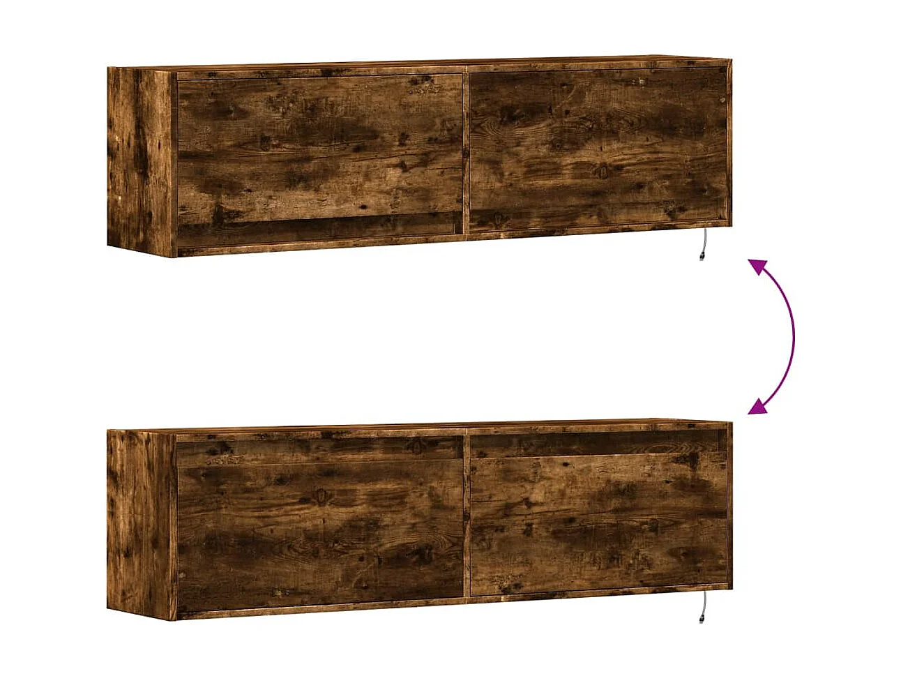 Meuble TV mural avec LED chêne fumé 180x31x39,5 cm