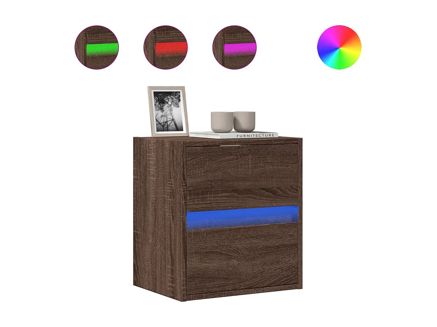 Meuble TV mural avec lumières LED chêne marron 41x31x45 cm