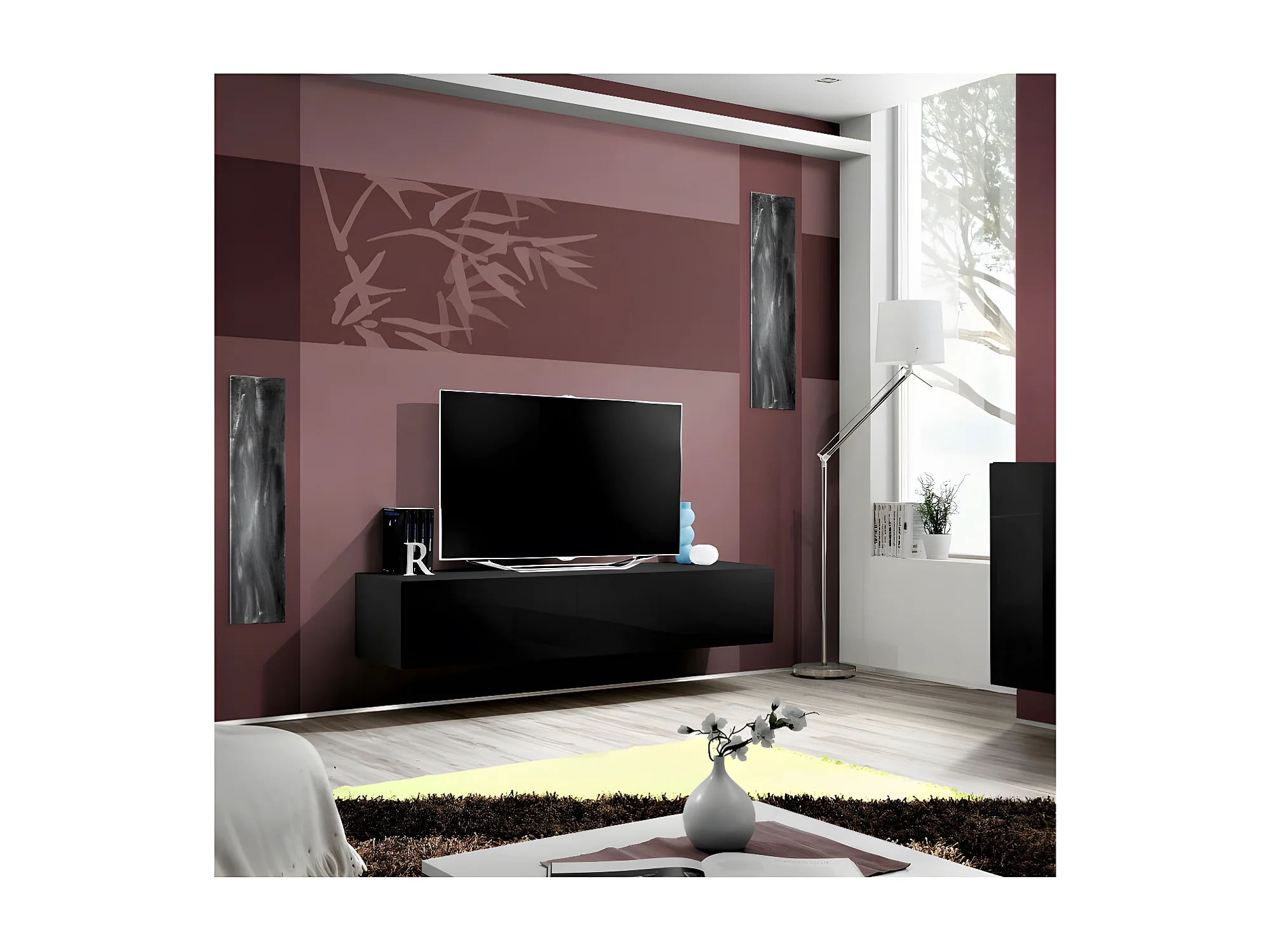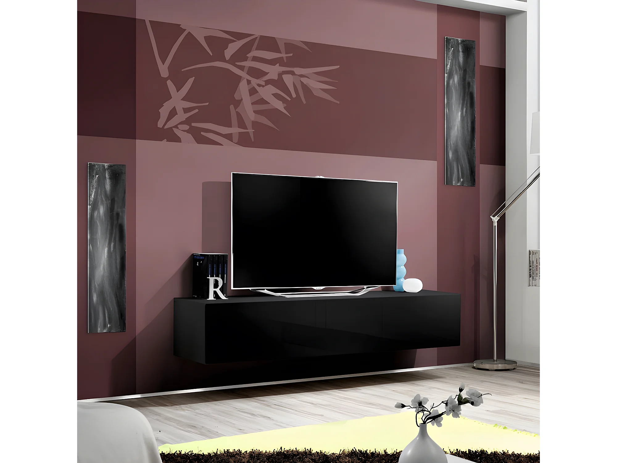 Meuble TV Mural Design "Fly I" 160cm Noir