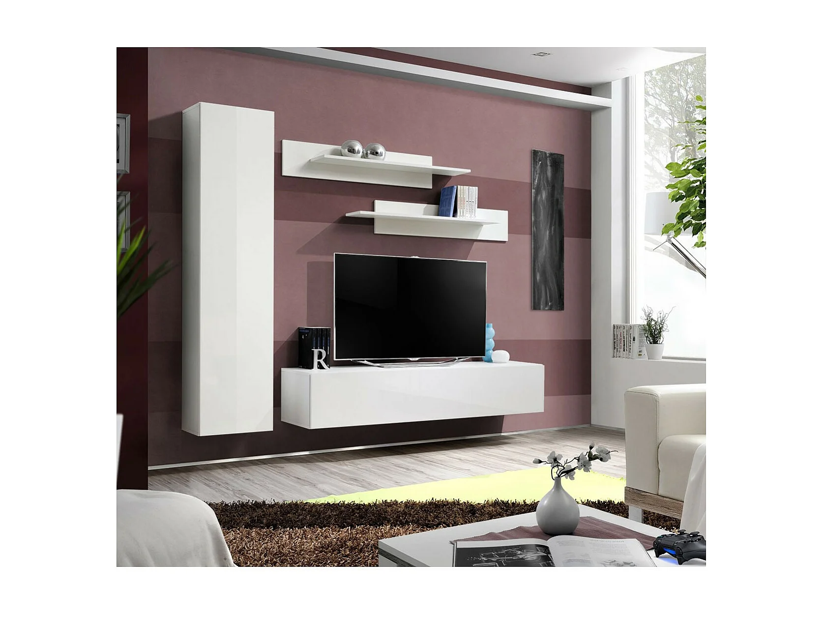 Meuble TV Mural Design "Fly I" 210cm Blanc