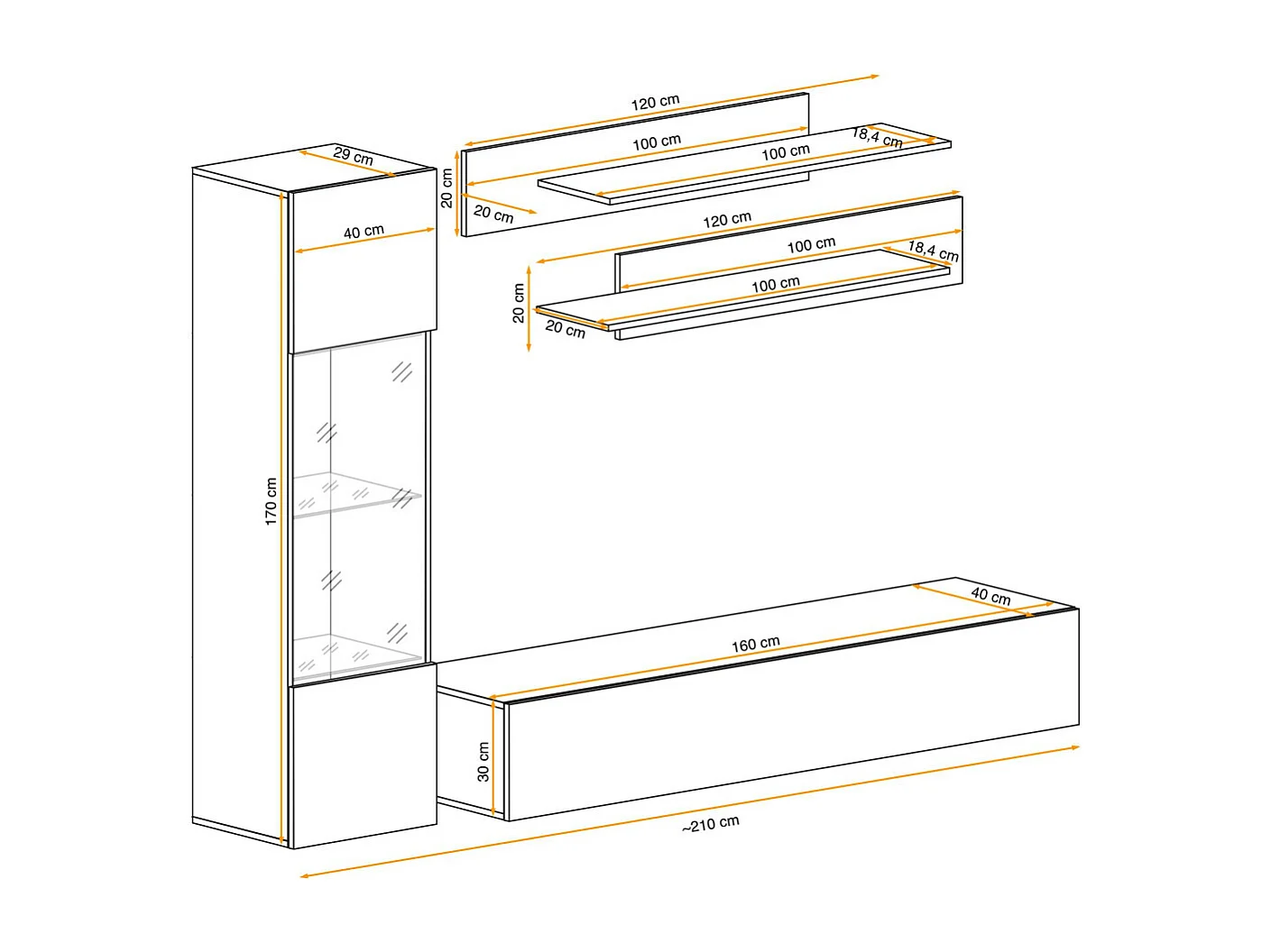 Meuble TV Mural Design "Fly III" 210cm Blanc