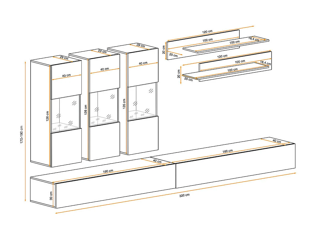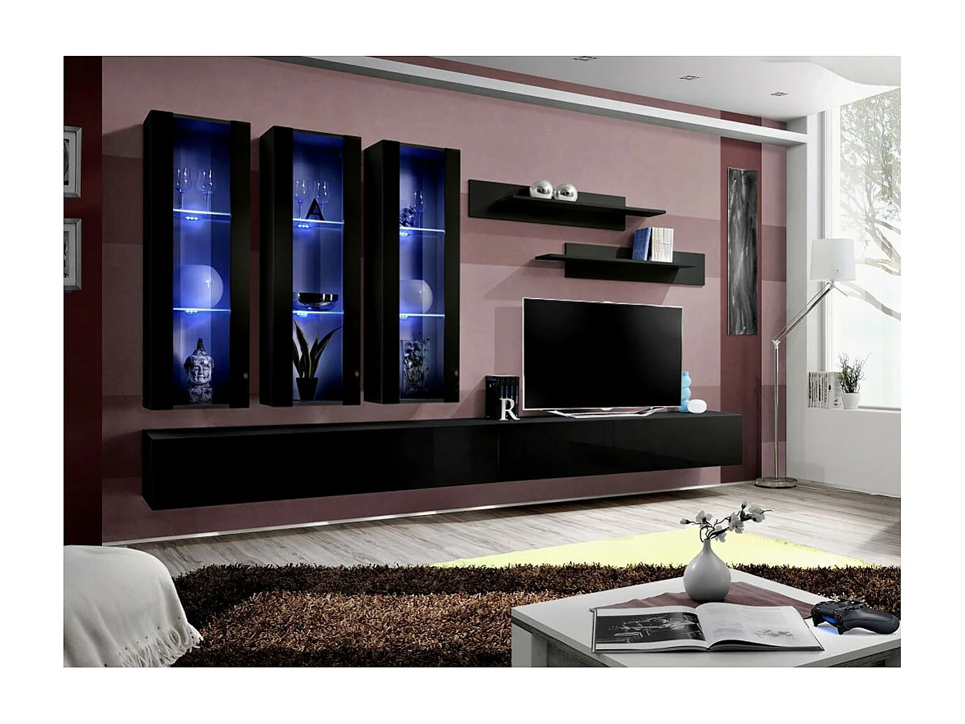 Meuble TV Mural Design "Fly III" 320cm Noir