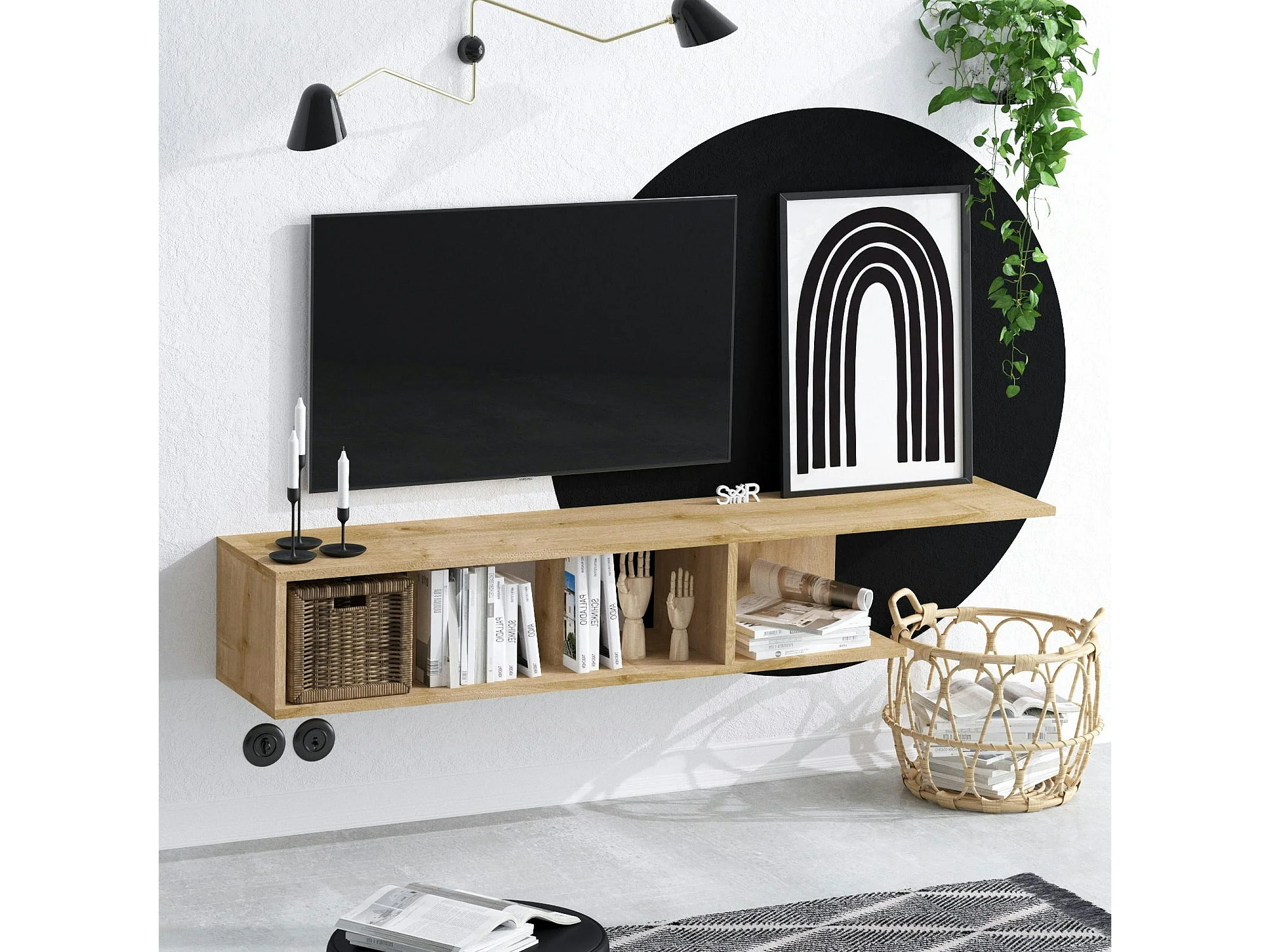 Meuble TV mural effet chêne - niches ouvertes MARFA