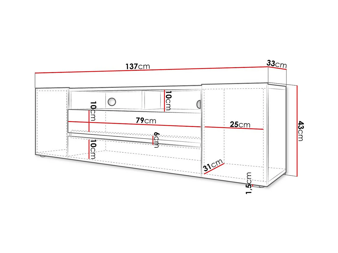 Meuble TV Nashville 114, Chêne wotan, Le nombre de portes: 4, 137x43x33cm