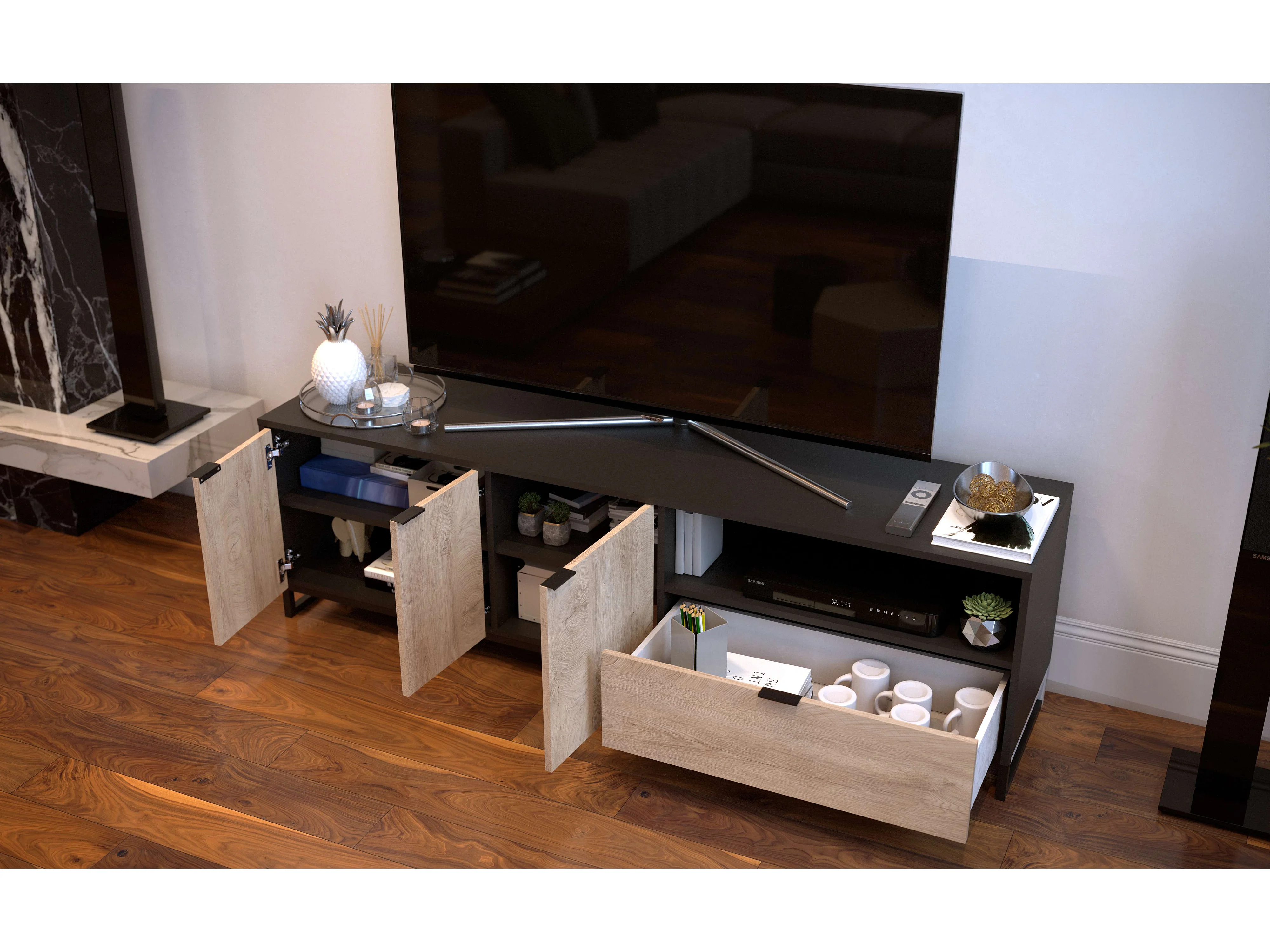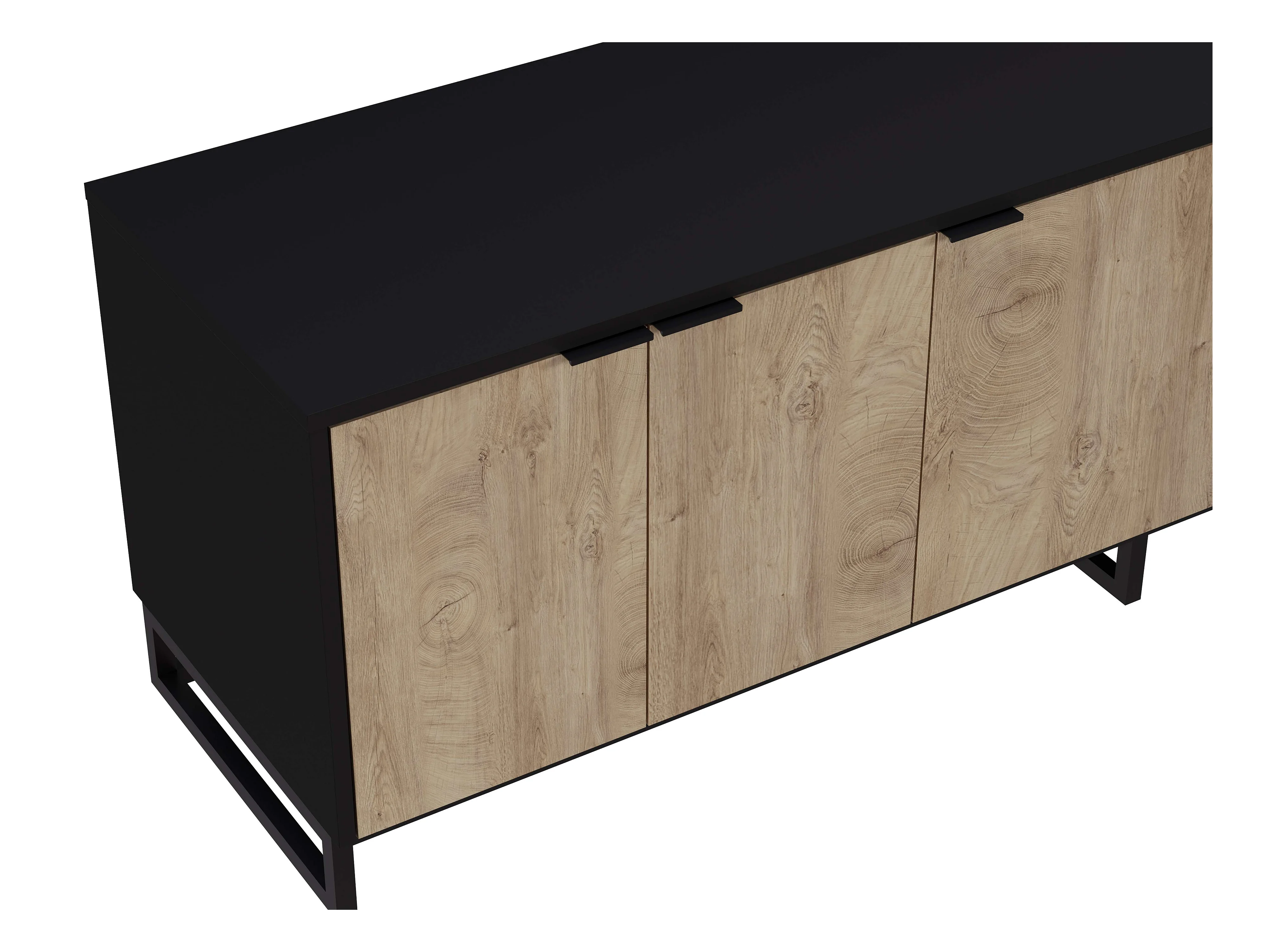 Meuble TV NEU 3 portes 1 tiroir 54,5x180x44 cm chêne et noir TALESA