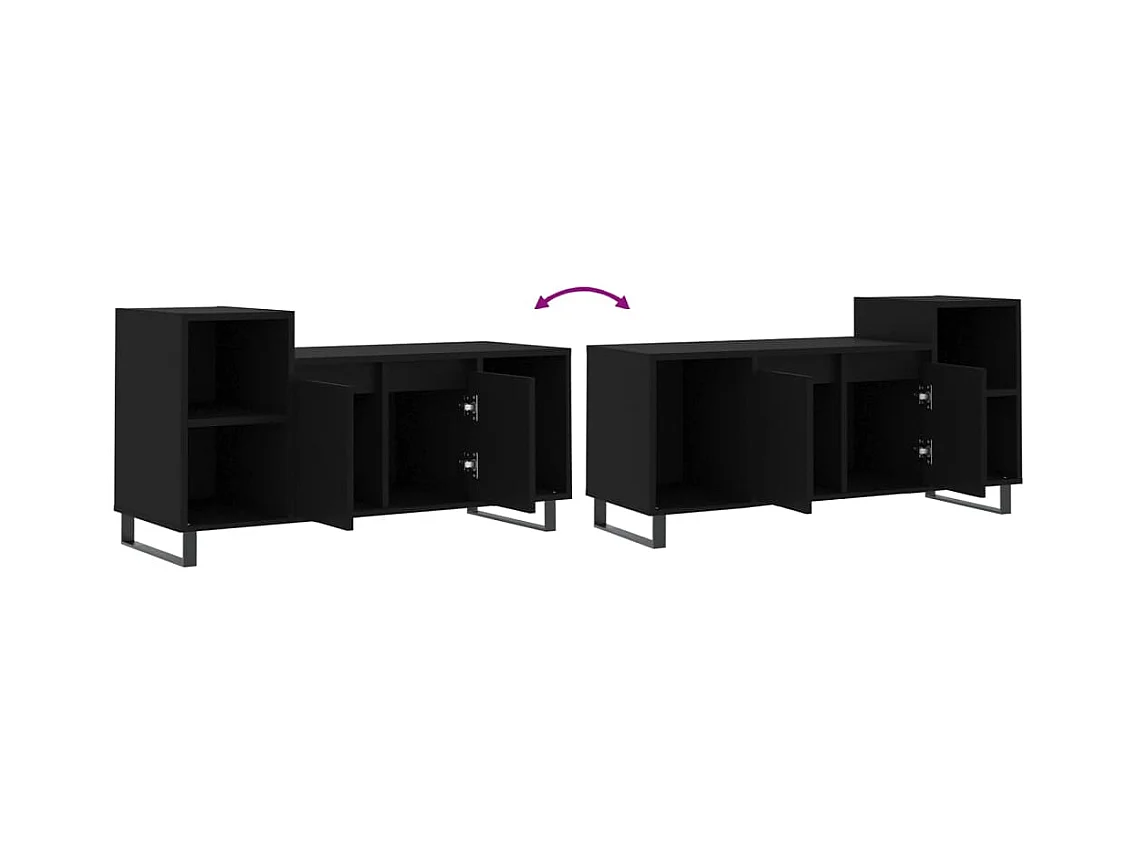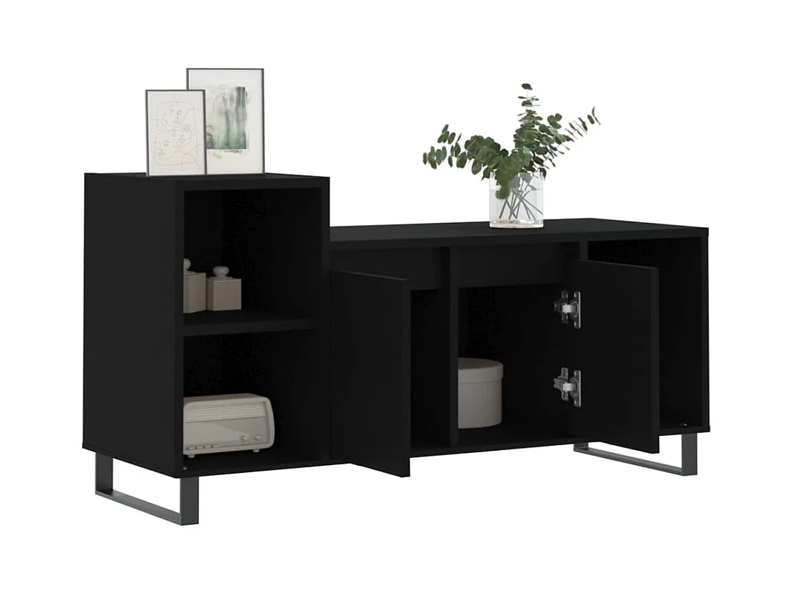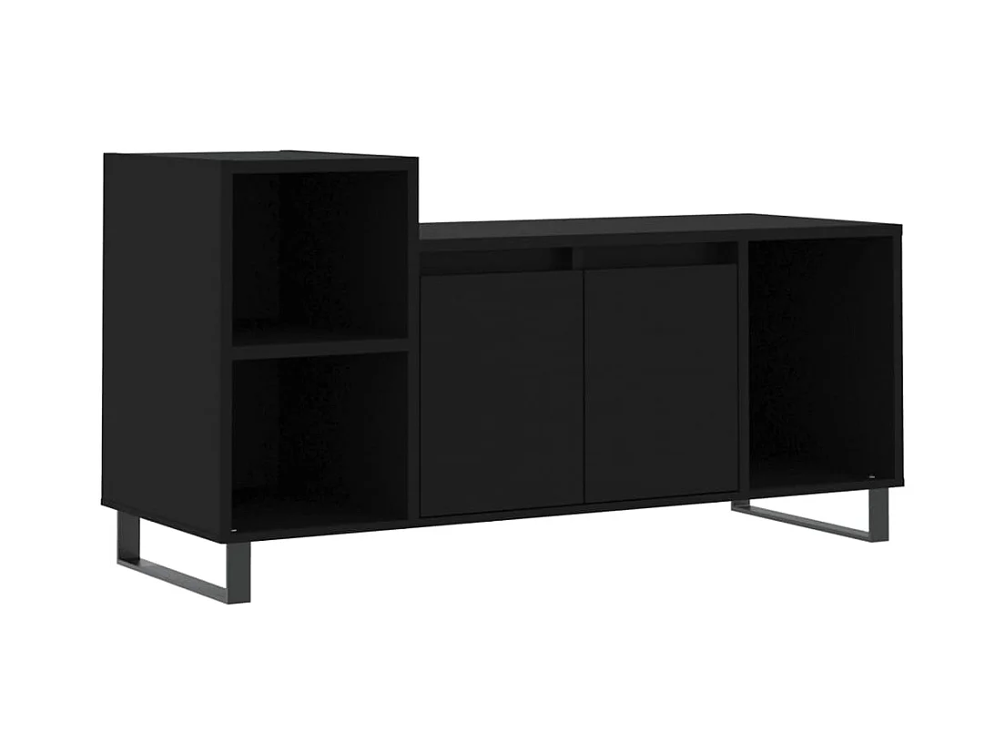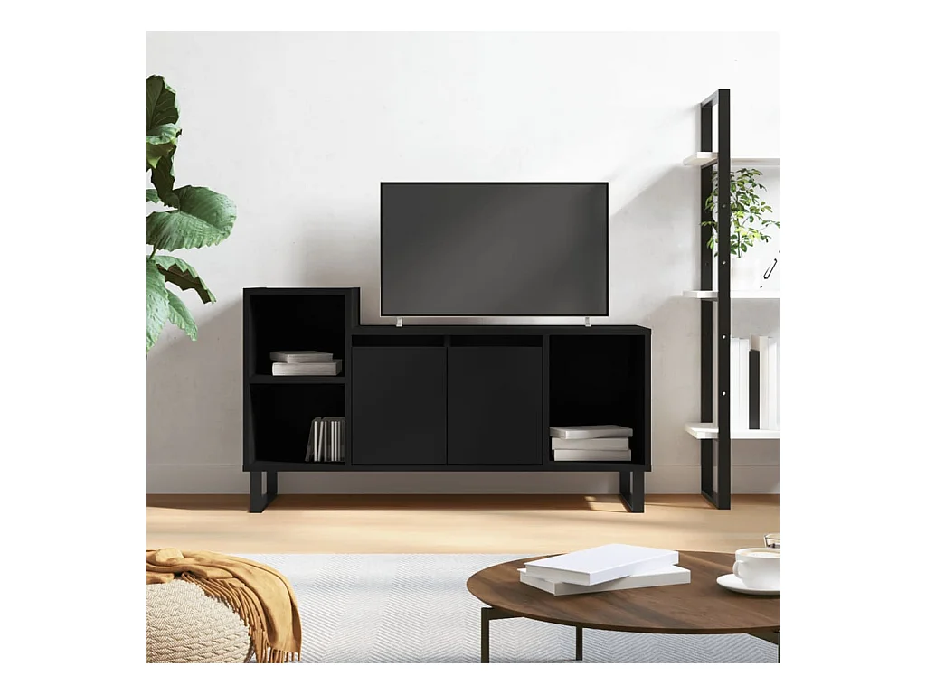 Meuble TV noir bois d'ingénierie et acier enduit de poudre