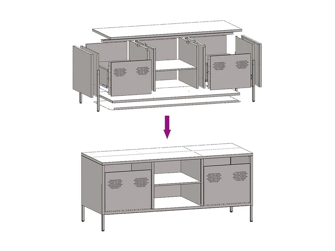 Meuble TV noir 135x39x43,5 acier laminé à froid