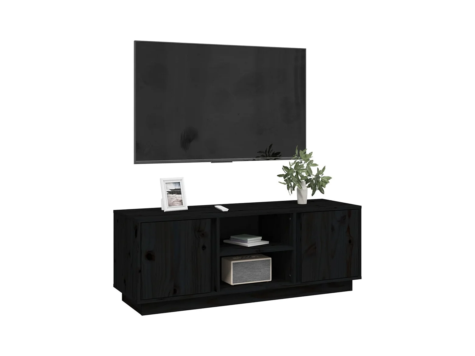 Meuble TV Noir 110x35x40,5 cm Bois de pin massif BE24109