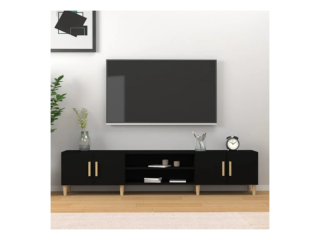 Meuble TV noir 180x31,5x40 cm bois d'ingénierie BE26508