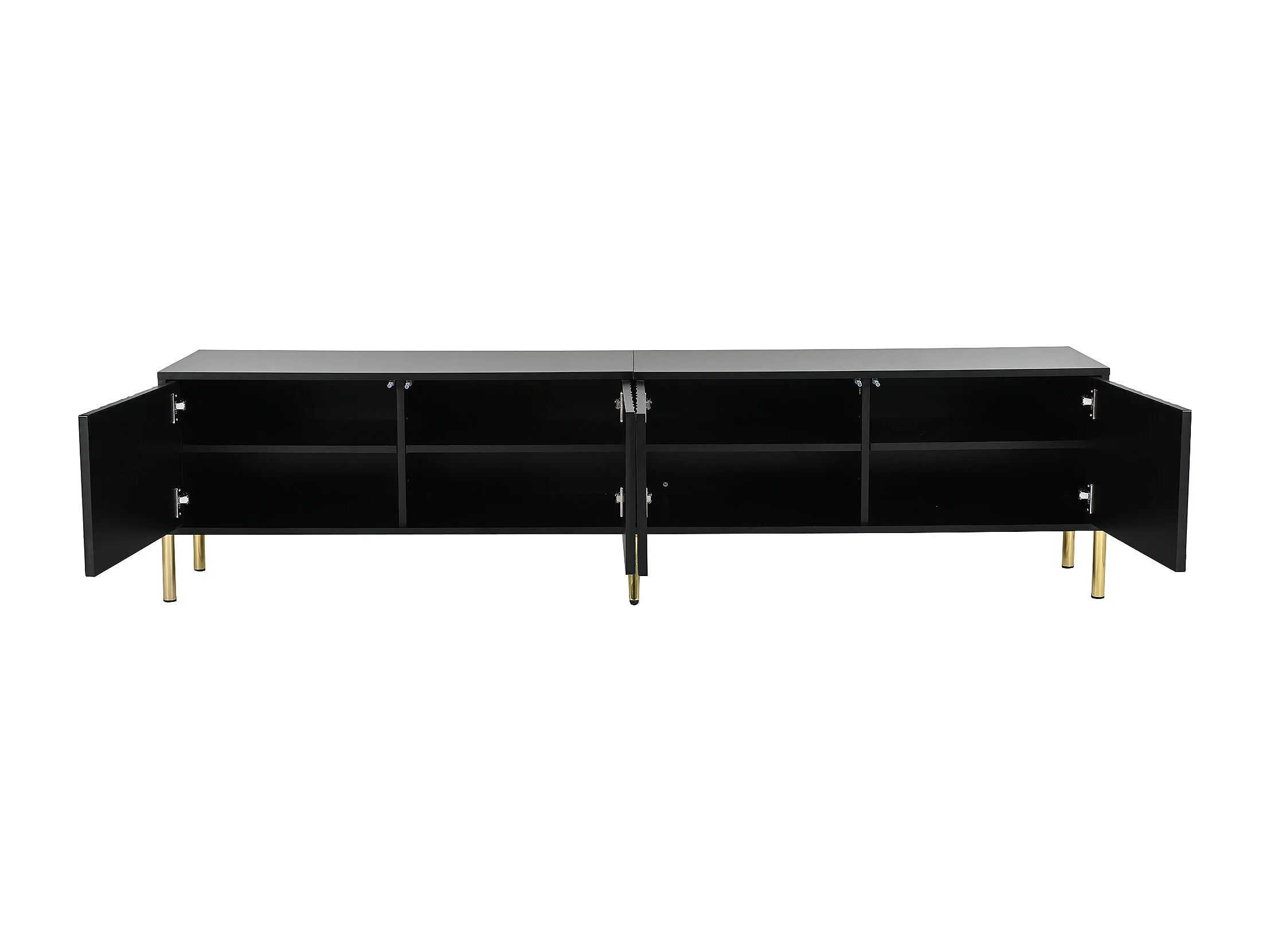 Meuble TV Noir, 4 portes, Design Élégant, Pieds dorés, MDF (190x38x48cm)
