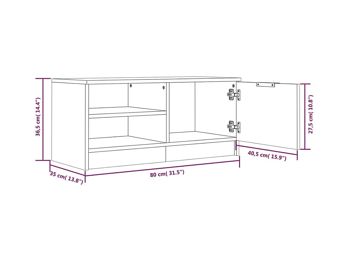 Meuble TV Noir 80x35x36,5 cm Bois d'ingénierie