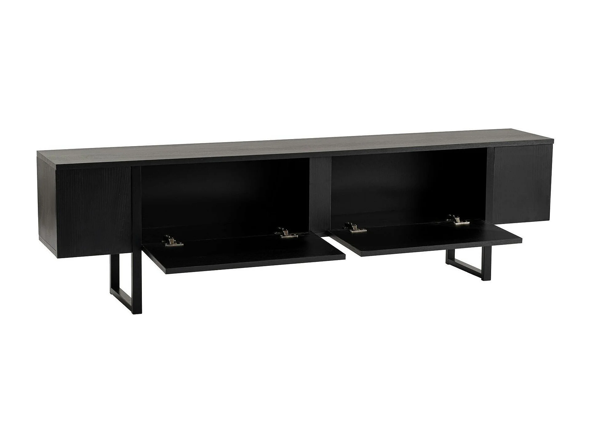 Meuble TV noir avec rangement - effet bois, pieds noirs JENA