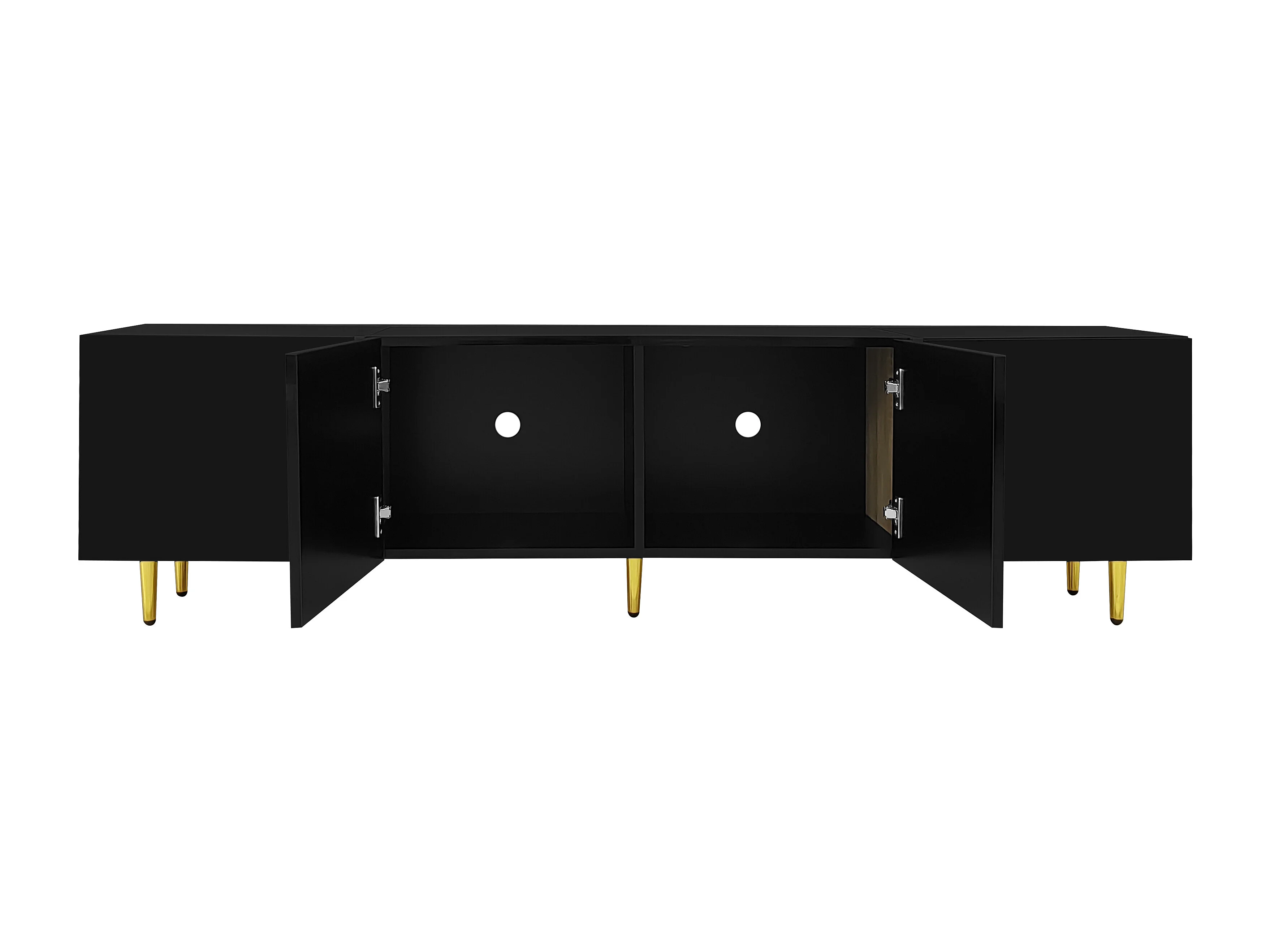 Meuble TV, avec Espace de Rangement, avec 4 Portes, Organisateur avec Pieds Ronds dorés, Noir