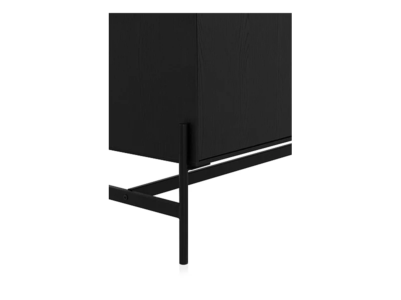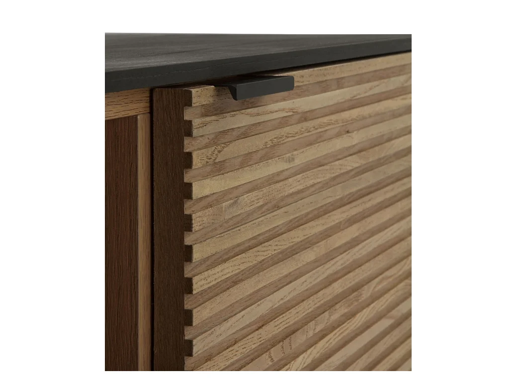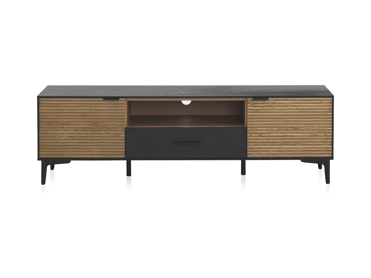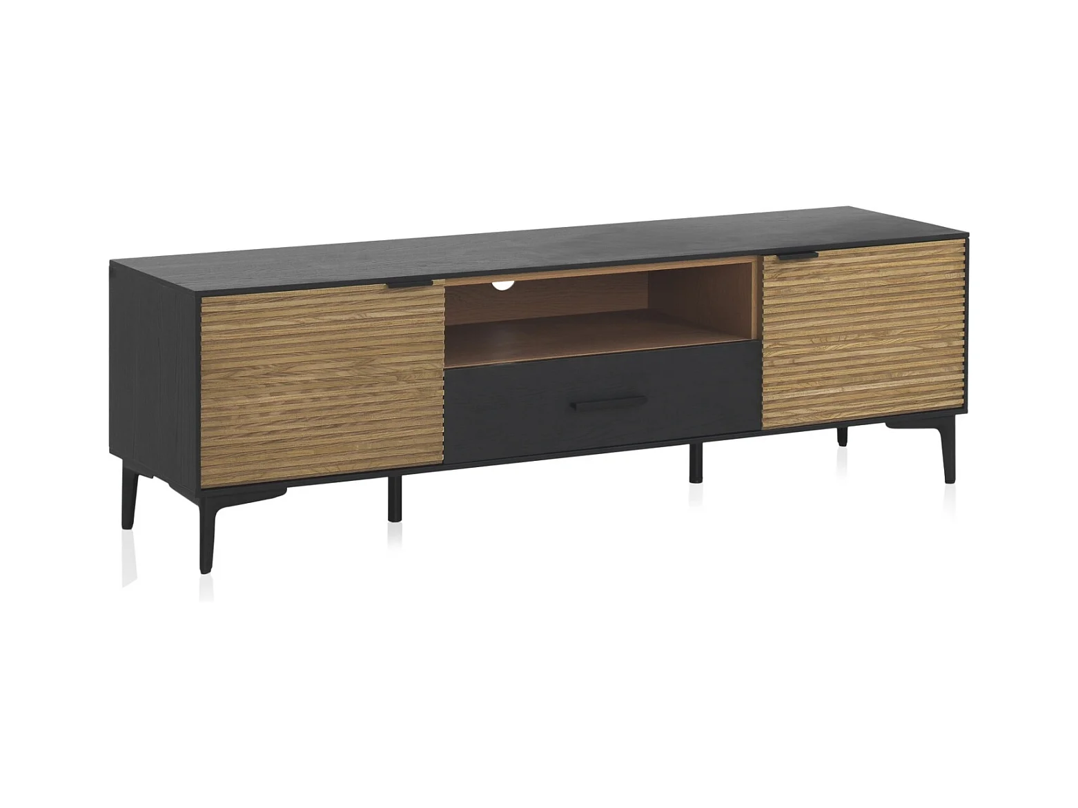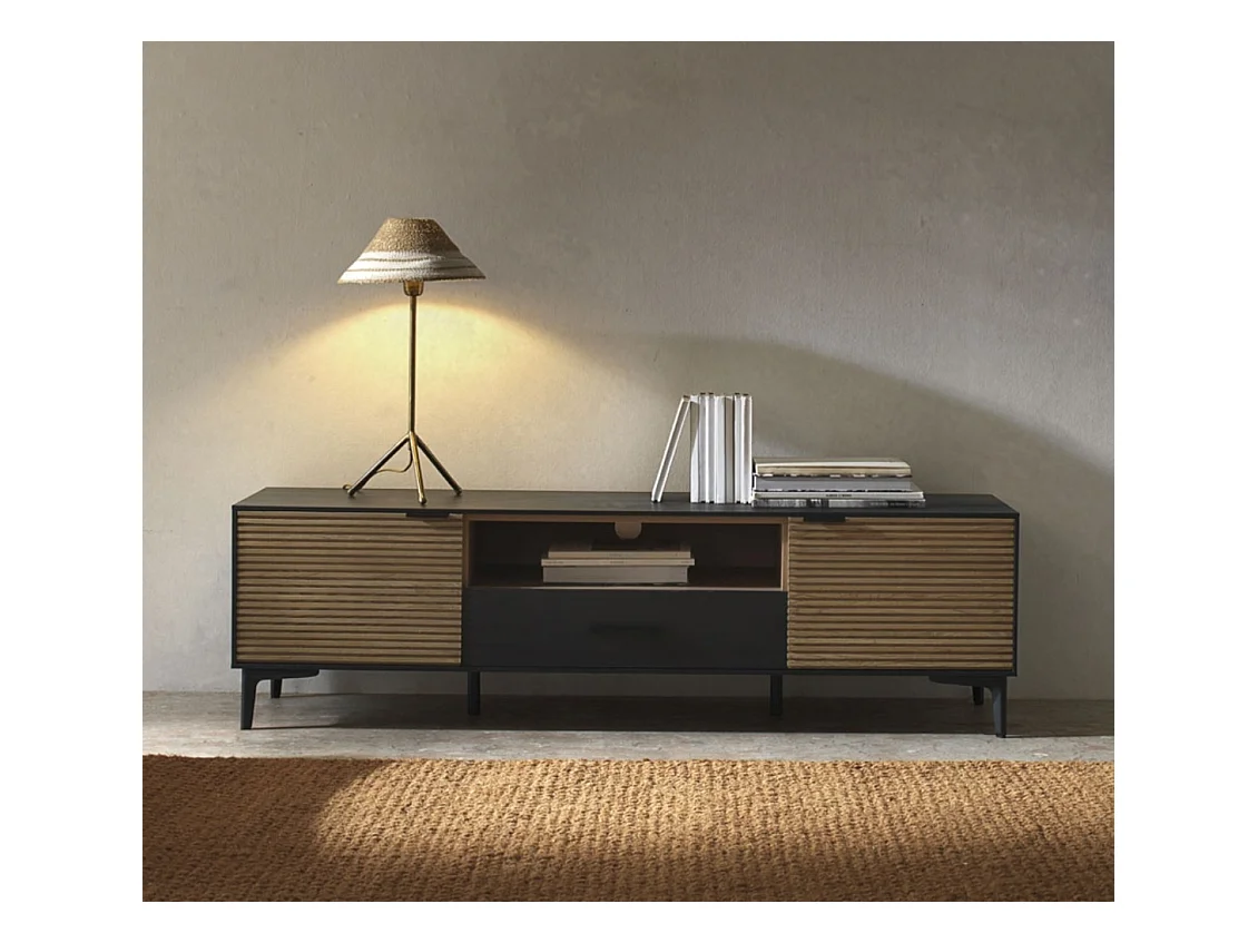 Meuble TV plaqué en frêne noir avec portes naturelles