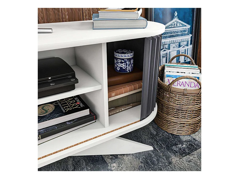 Meuble TV portes coulissantes Natera 180cm Blanc et Anthracite