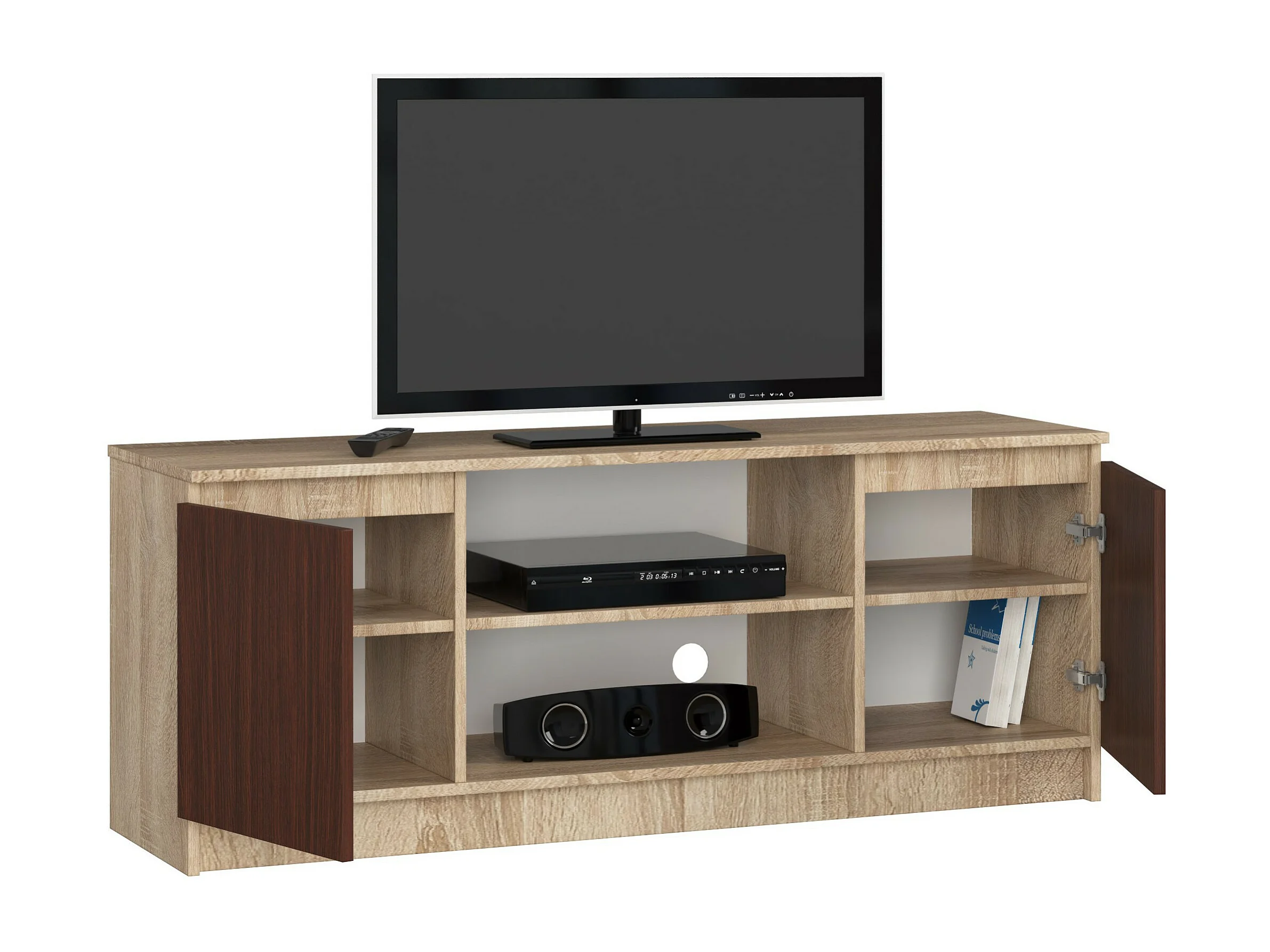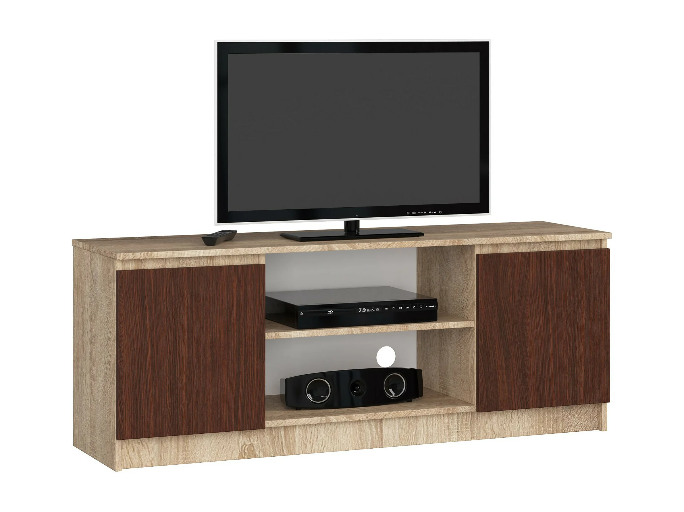 Meuble TV pour salon AKORD Chêne Sonoma 140 cm 2 portes façade Wengé 2 étagères 140x40x55 cm