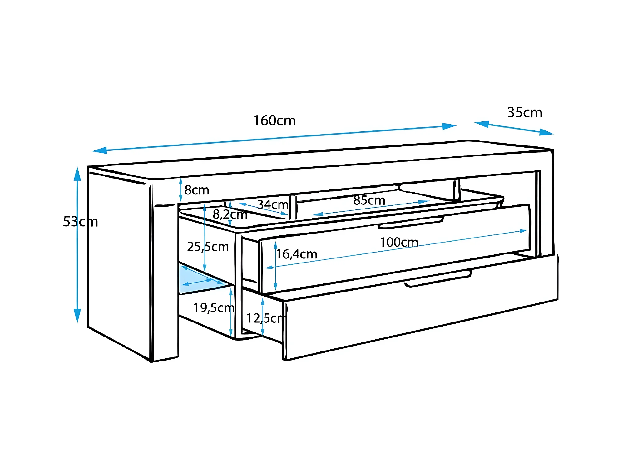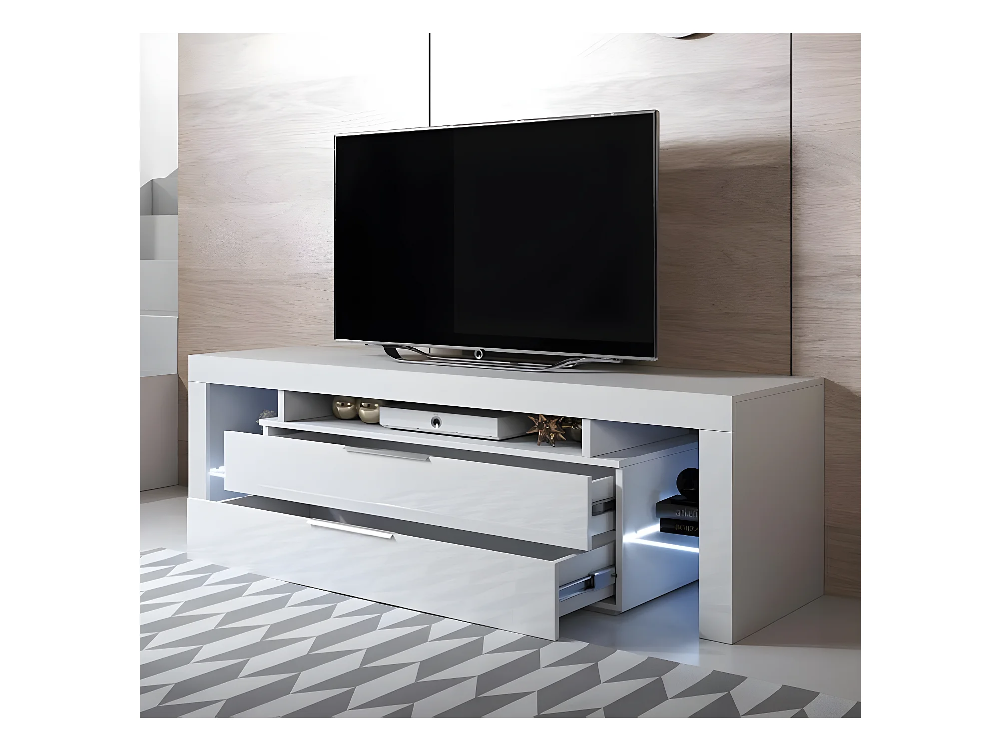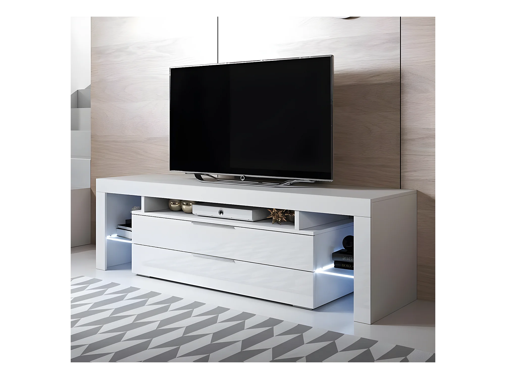 Meuble TV pour Salon Salle à manger en Blanc avec LED 160x35x53cm Selma