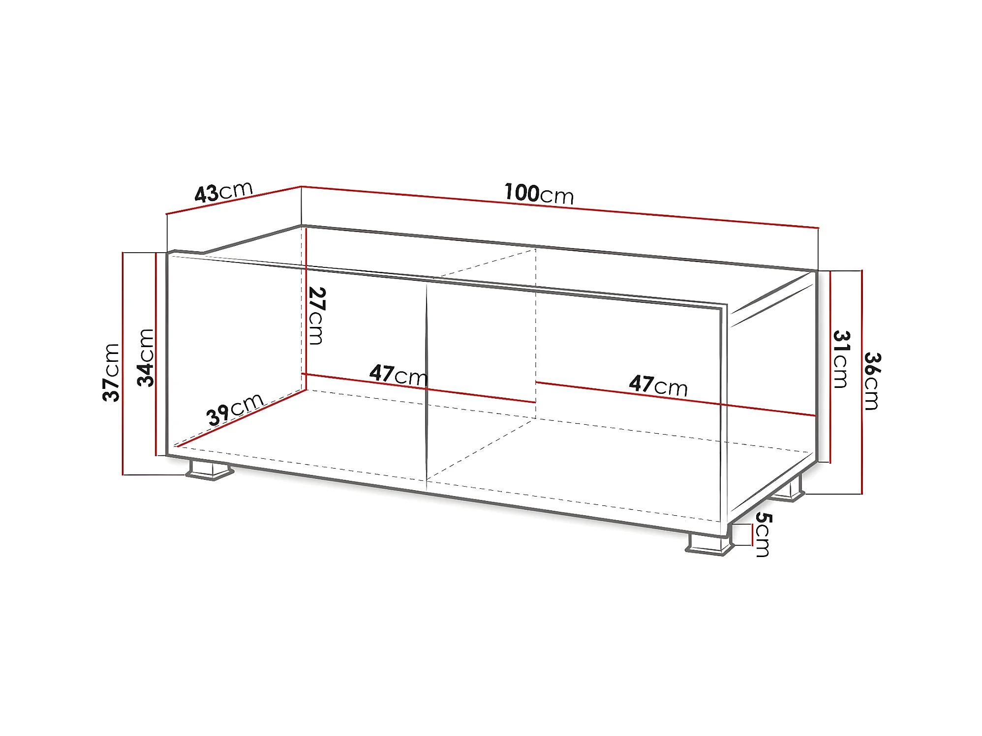 Meuble TV Tivdalu 104, Blanc brillant|Blanc, Le nombre de portes: 2, 100x37x43cm