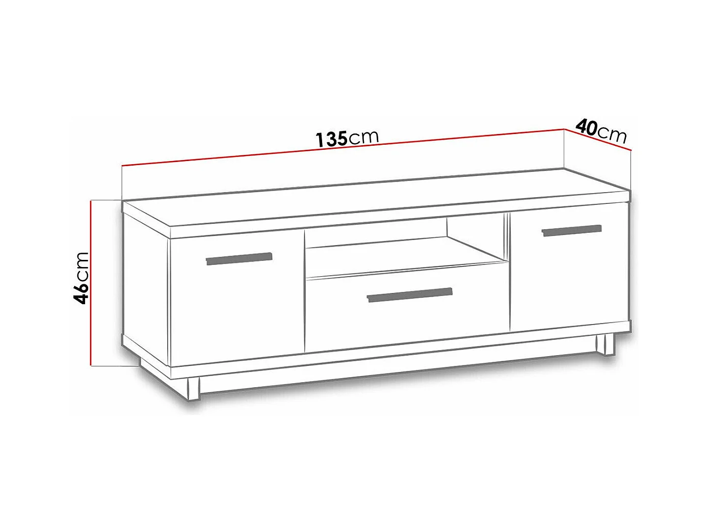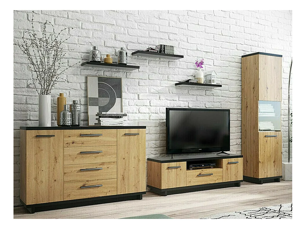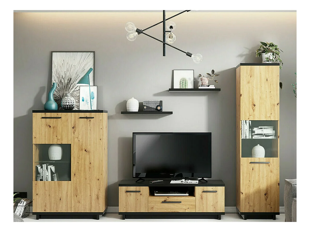 Meuble TV Morlira 105, Chêne Artisan|Noir mat, Le nombre de portes: 2, 135x46x40cm
