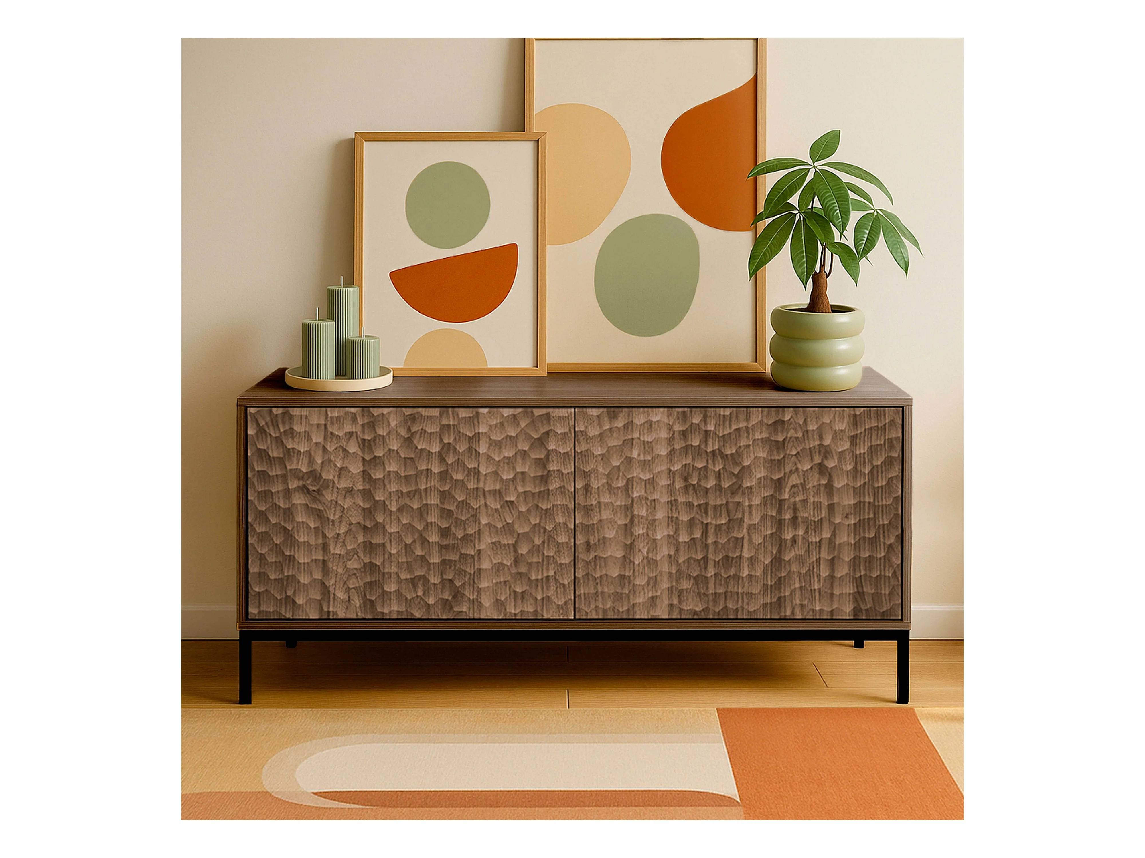 Meuble TV vintage bois foncé avec tiroirs L140 cm FIFTIES