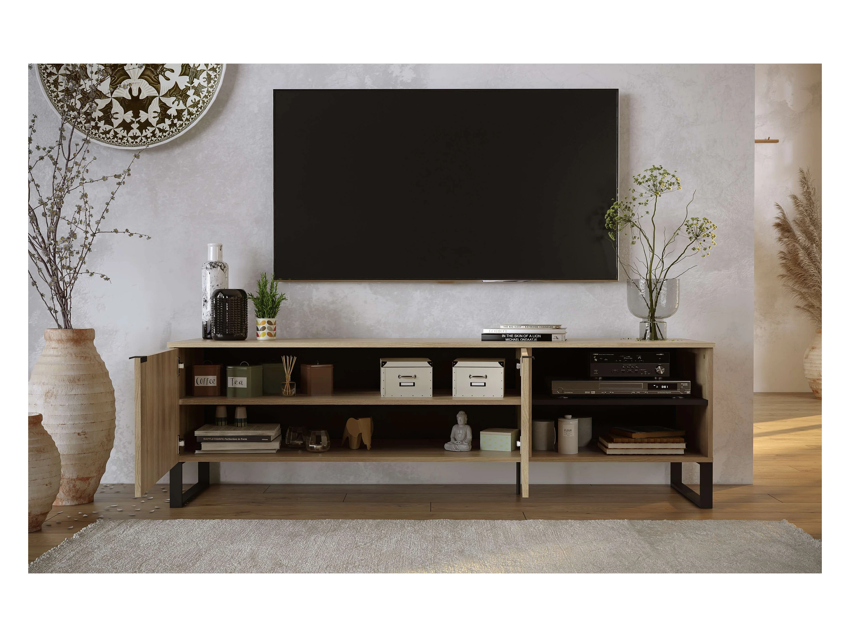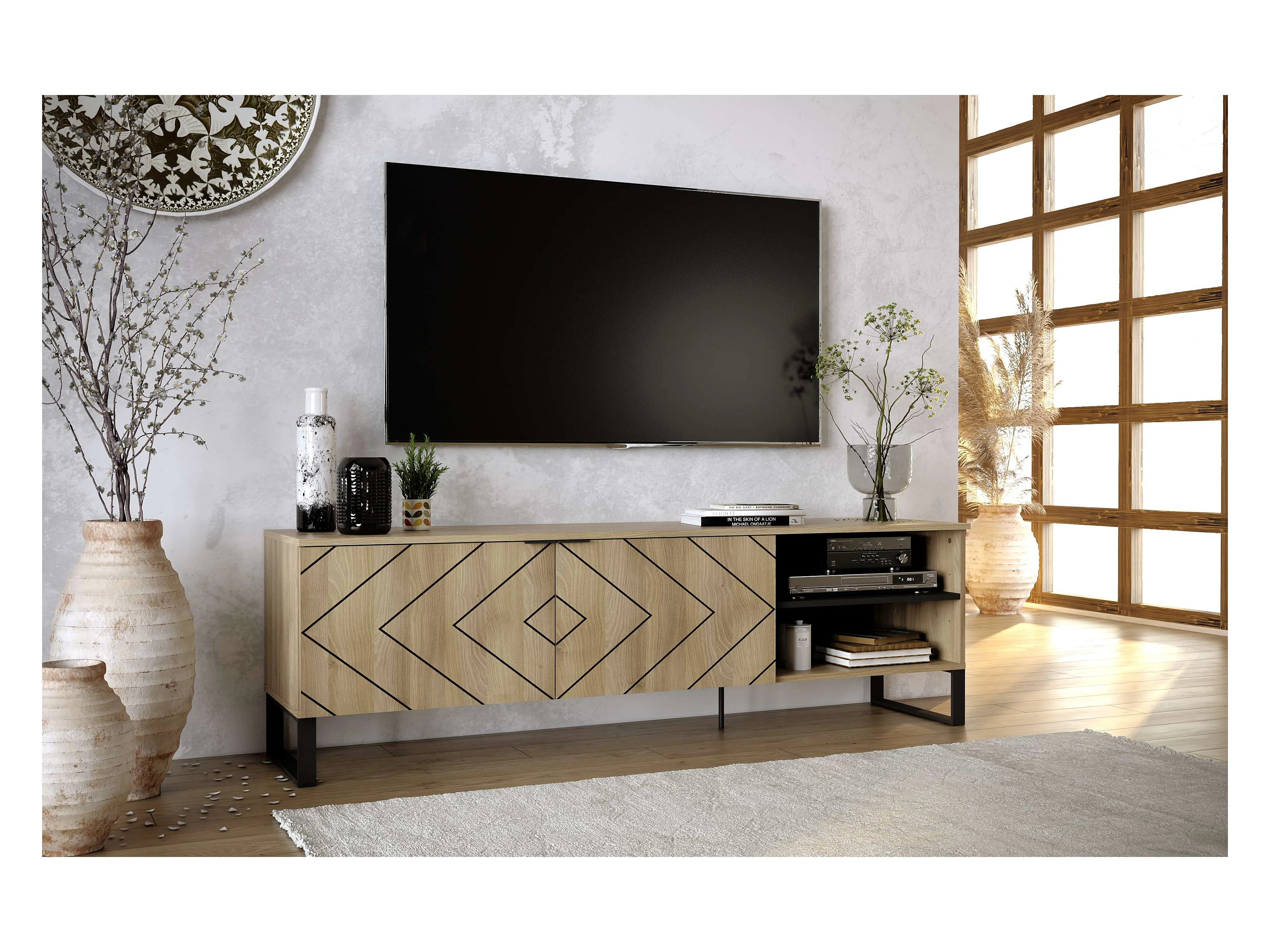 Meuble TV ROMO 2 portes 55x180x44 cm chêne TALESA