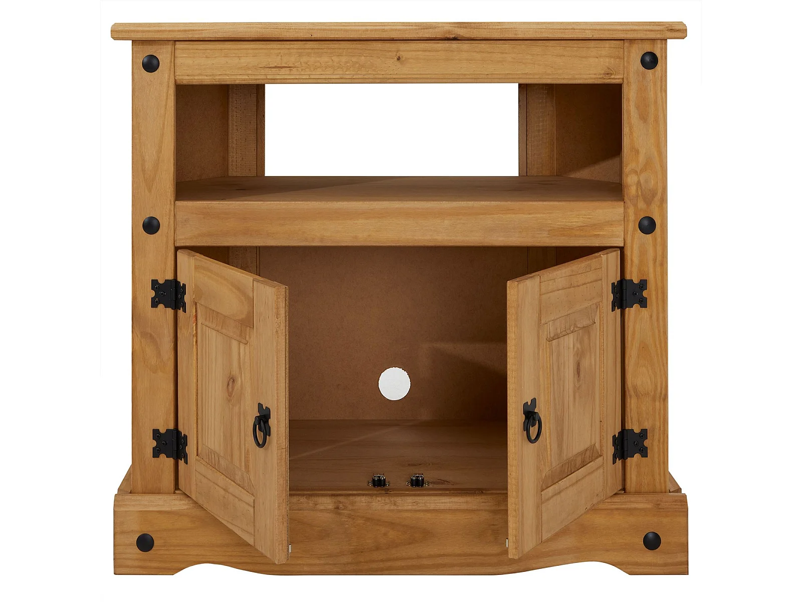 Meuble TV SALSA L 85 cm en bois massif brun avec 2 portes et une niche, meuble de salon style mexicain