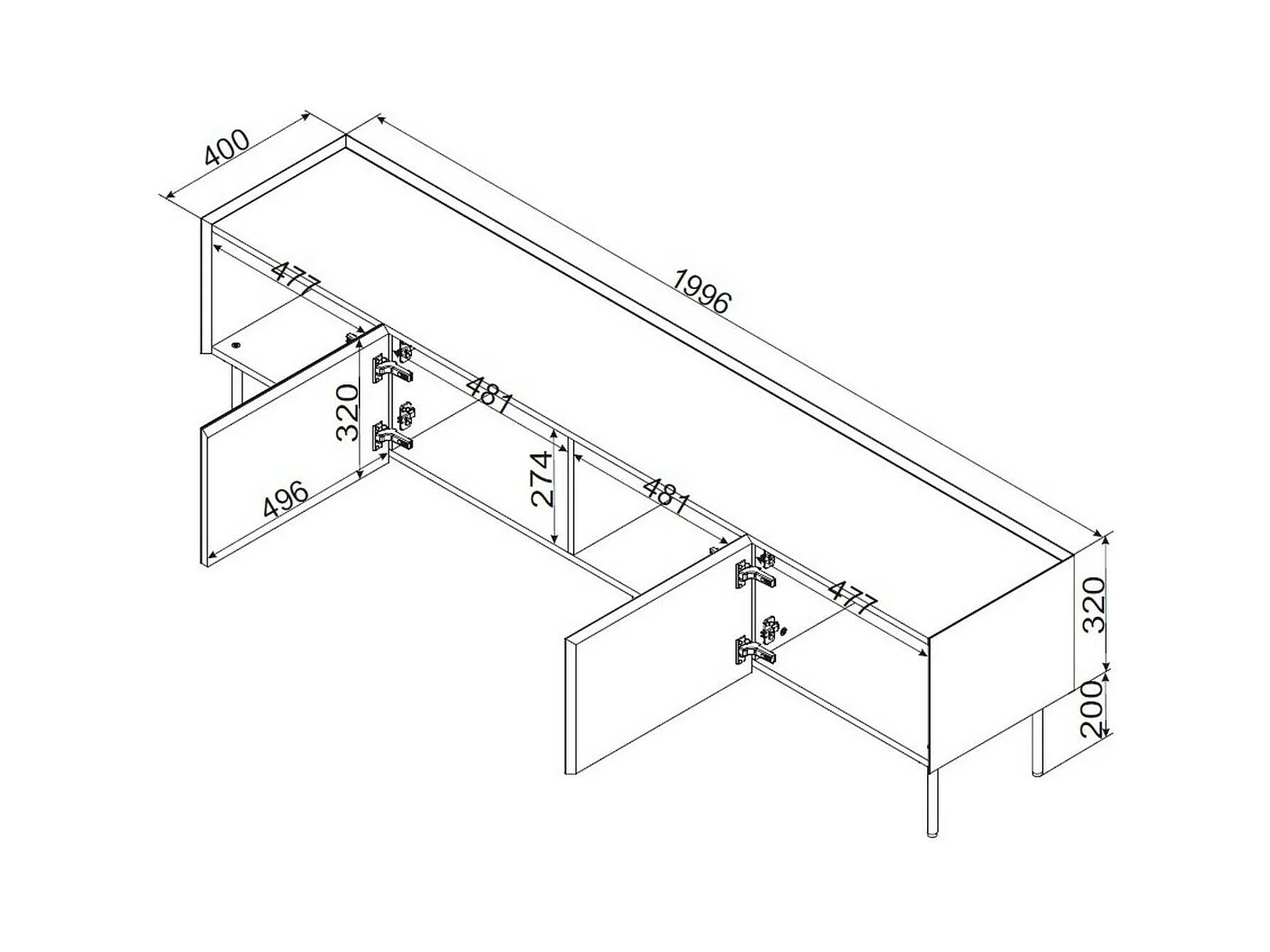 Meuble TV Novas, une étagère, 40x200x52h cm Beige Chêne