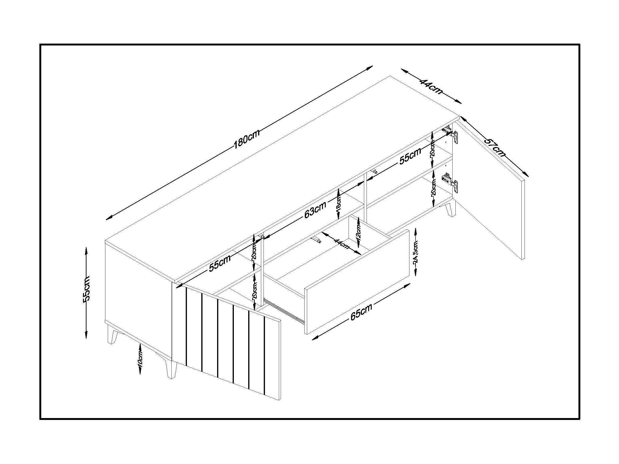 Meuble TV SEA 2 portes 1 tiroir 55x180x44 cm chêne TALESA