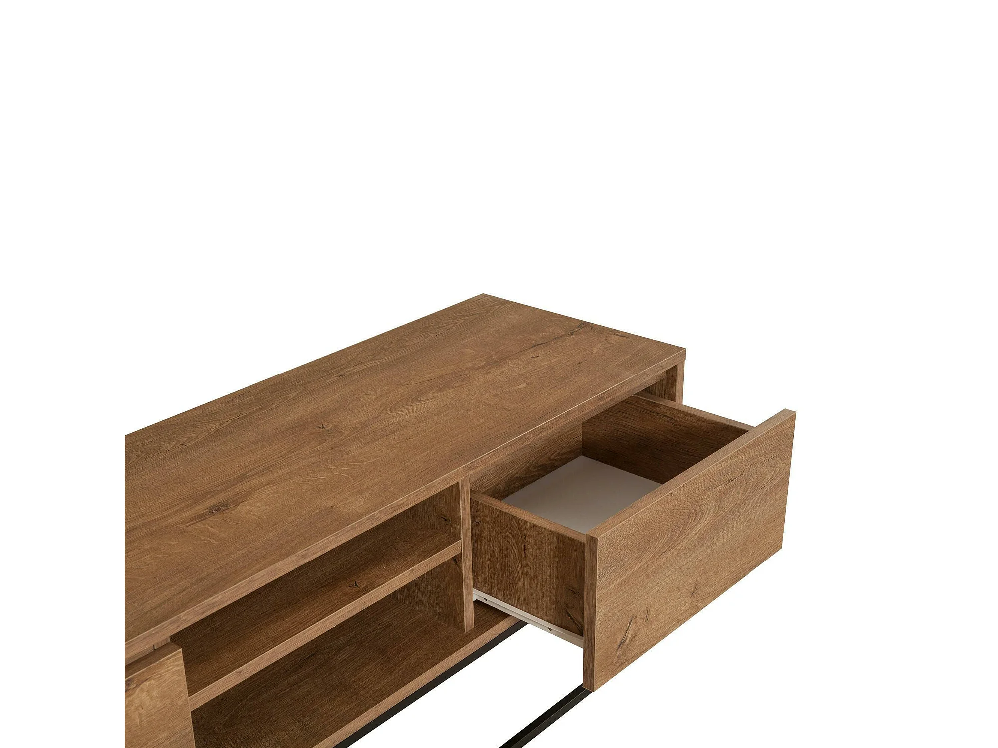 Meuble TV Selena, Buffet de salon, Armoire basse pour TV, Base murale de rangement, 140x40h50 cm, Noyer et Noir