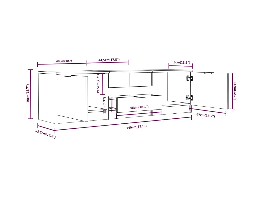 Meuble TV Sonoma gris 140x35x40 cm Bois d'ingénierie