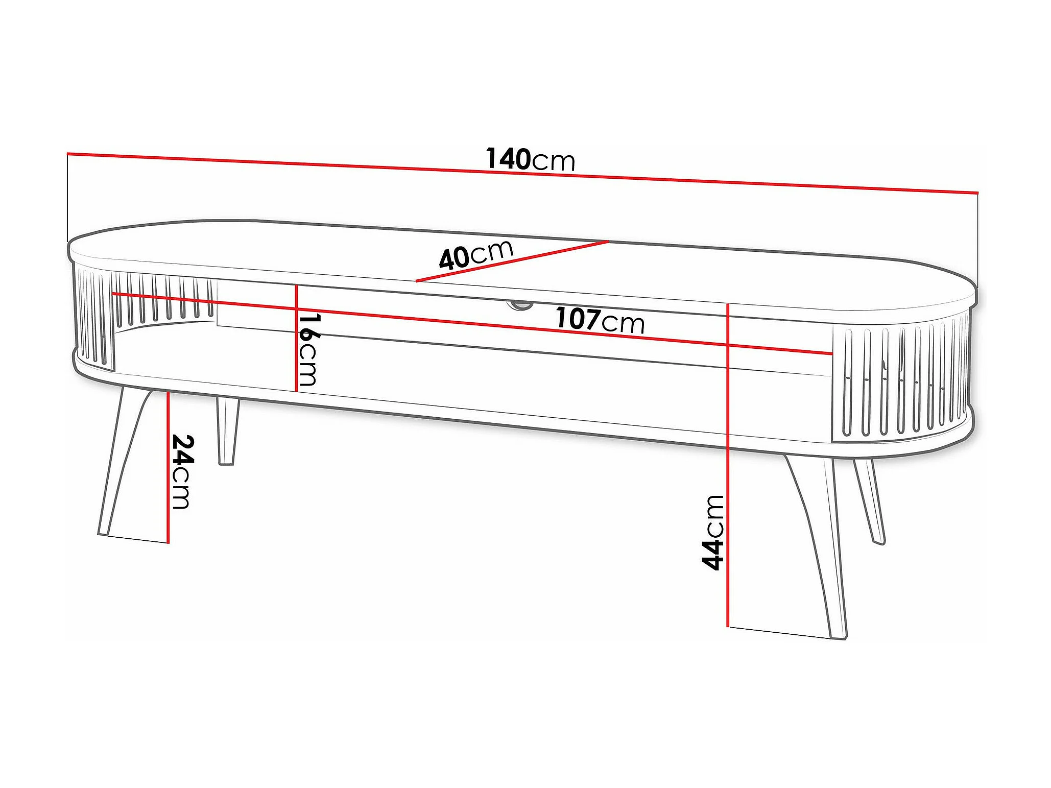Meuble TV Sordore 109, Blanc|Doré, 140x44x40cm
