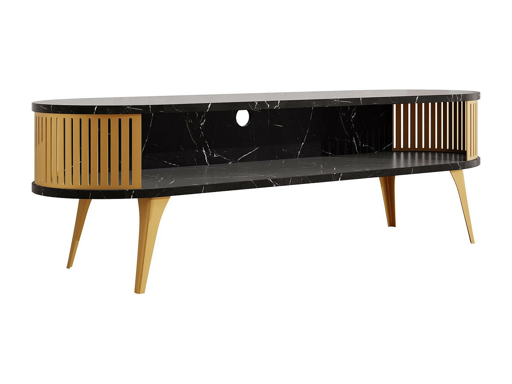 Meuble TV Sordore 109, Doré|Marbre noir, 140x44x40cm