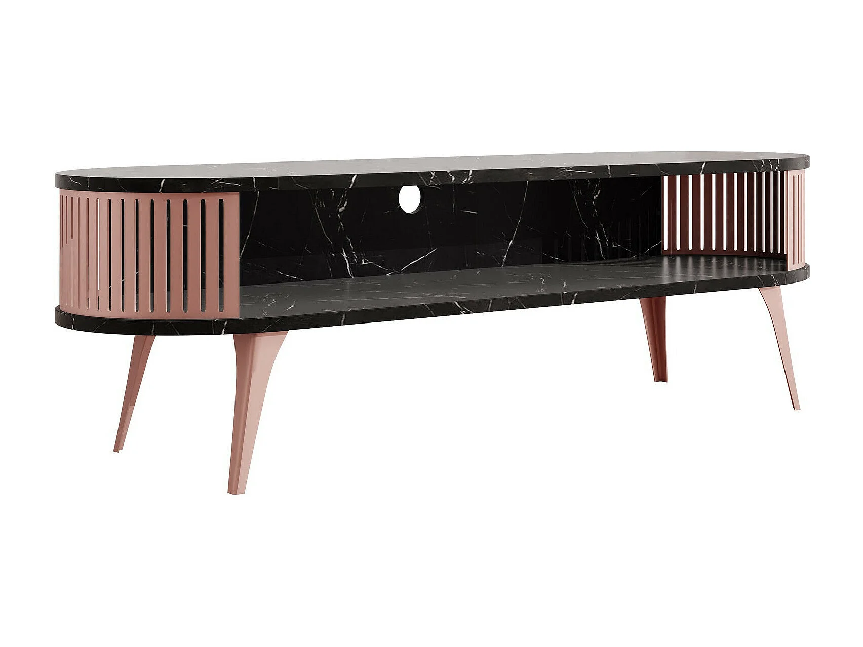 Meuble TV Sordore 110, Marbre blanc|Rose, 140x44x40cm