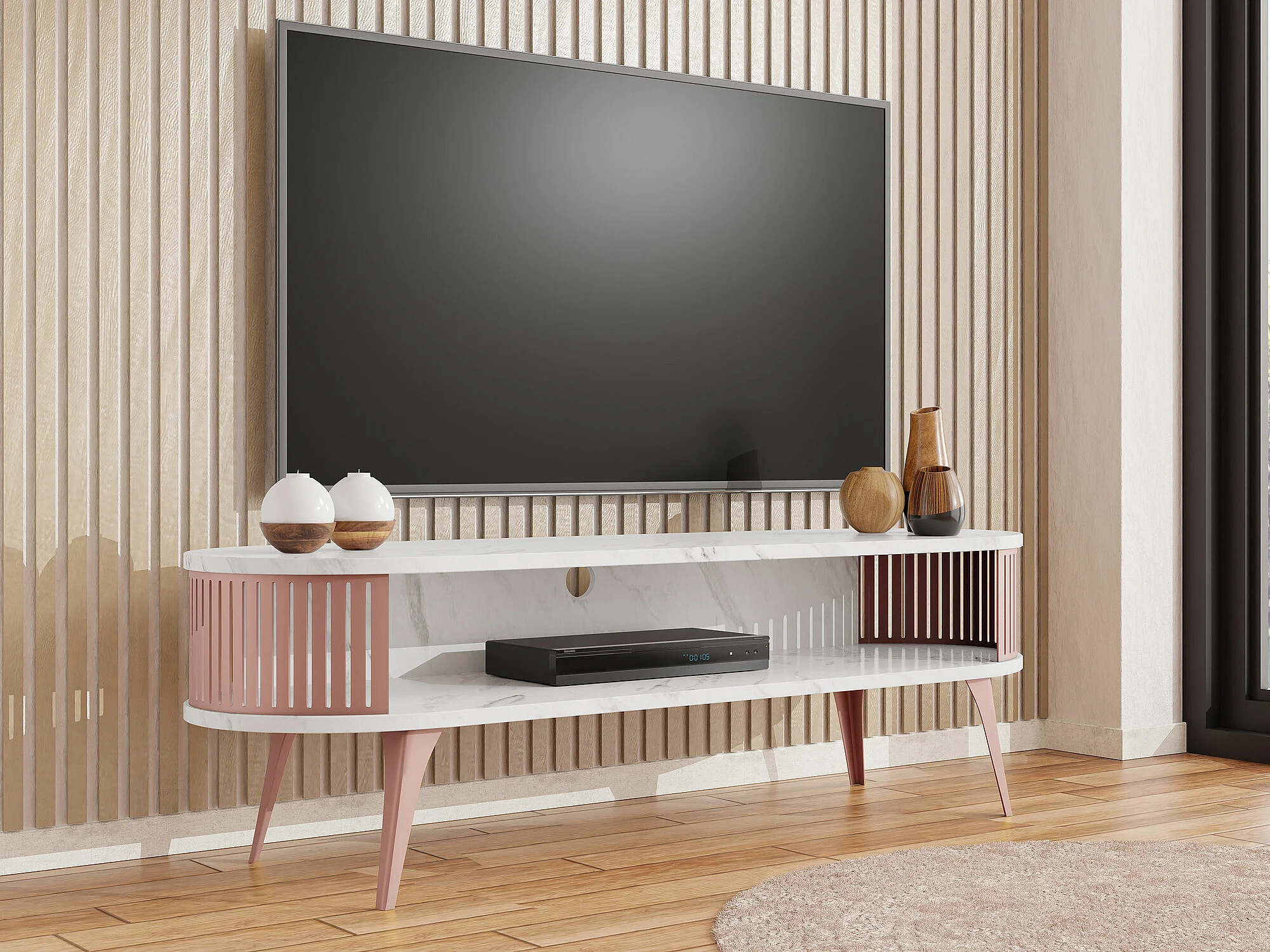 Meuble TV Sordore 110, Marbre noir|Rose, 140x44x40cm