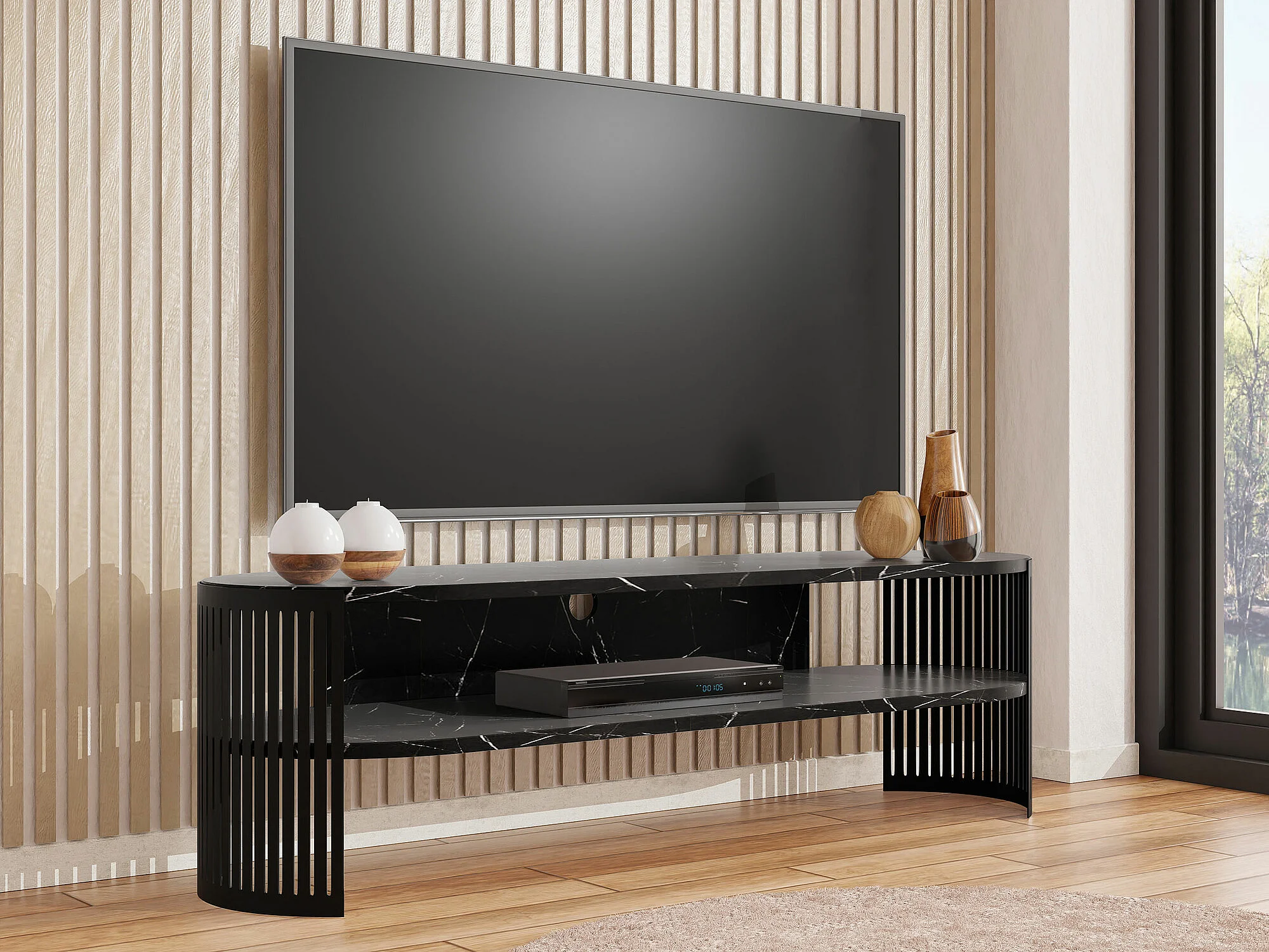 Meuble TV Sordore 121, Marbre noir|Noir, 140x40x40cm