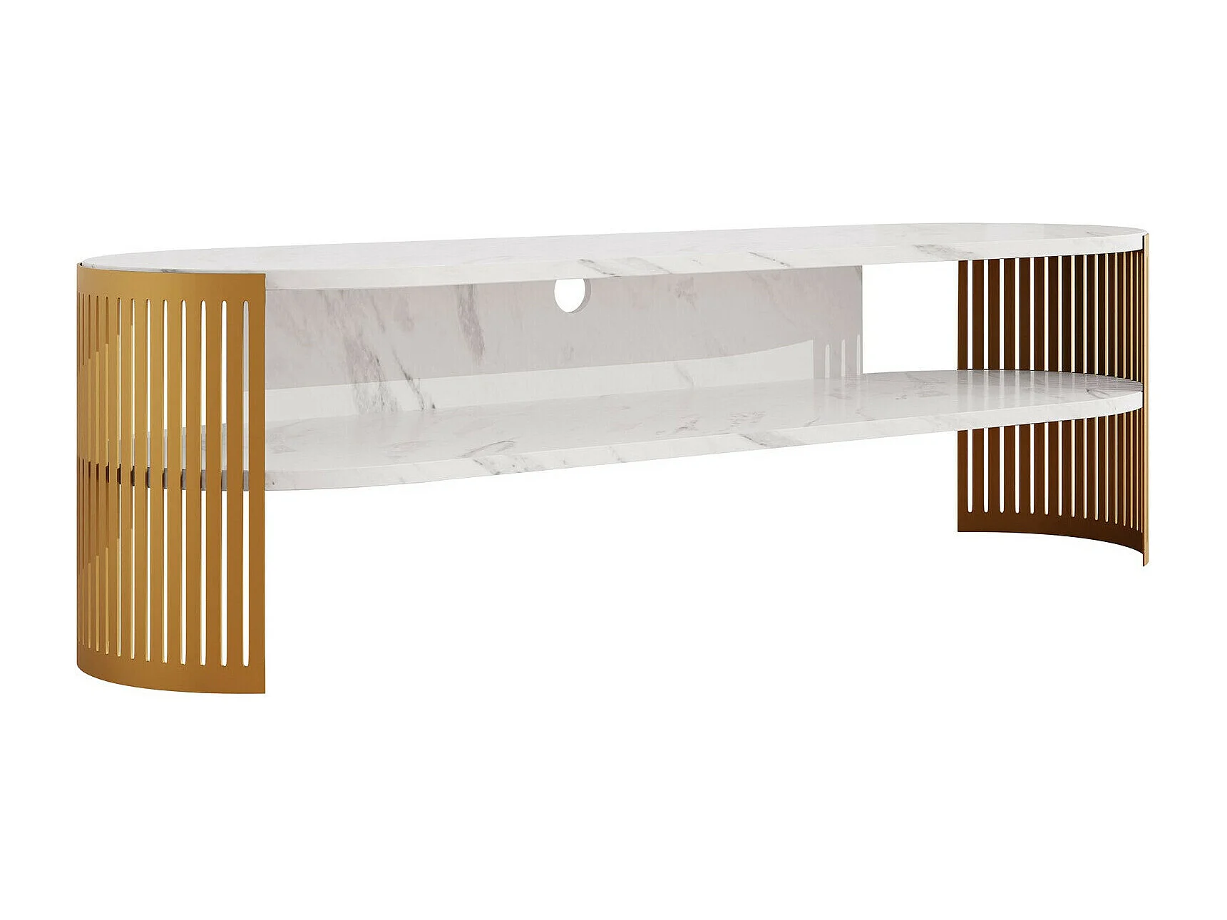 Meuble TV Sordore 122, Doré|Marbre blanc, 140x44x40cm