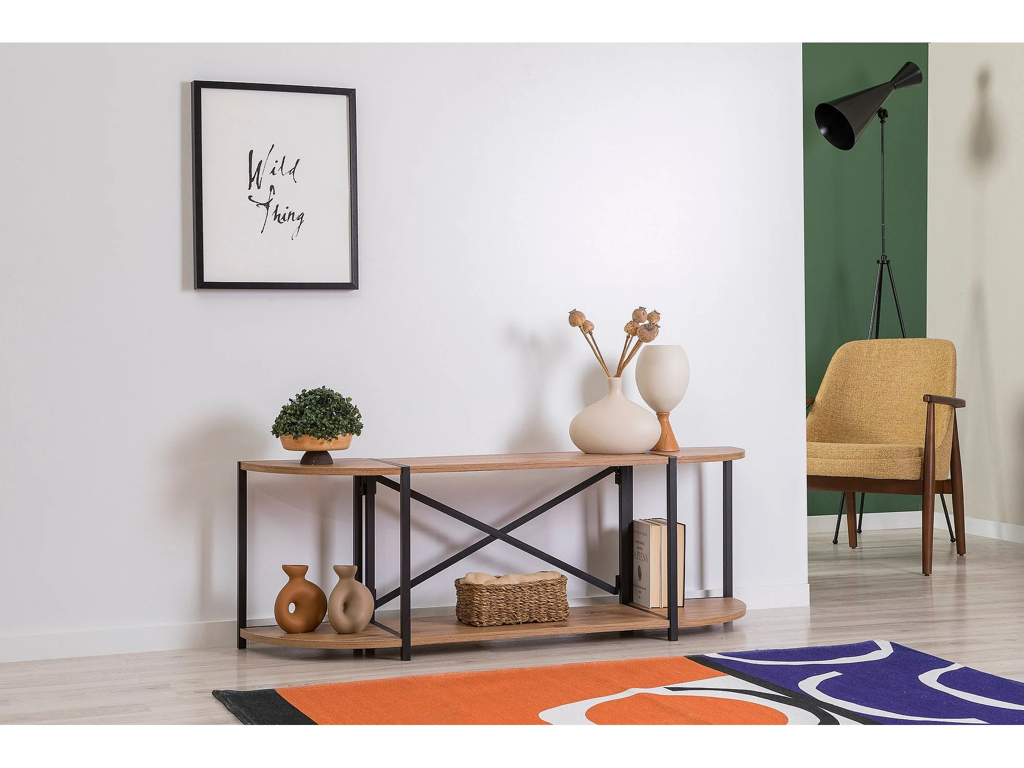 Meuble TV style industriel Senlid L180cm Métal Noir et Bois clair