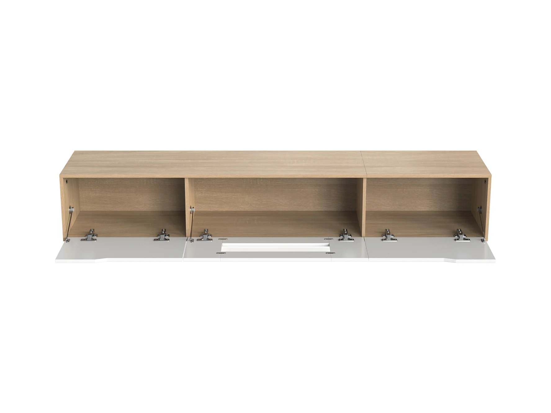 Meuble TV de salon Opole avec 2 portes pliantes, blanc et chêne clair, 180 cm