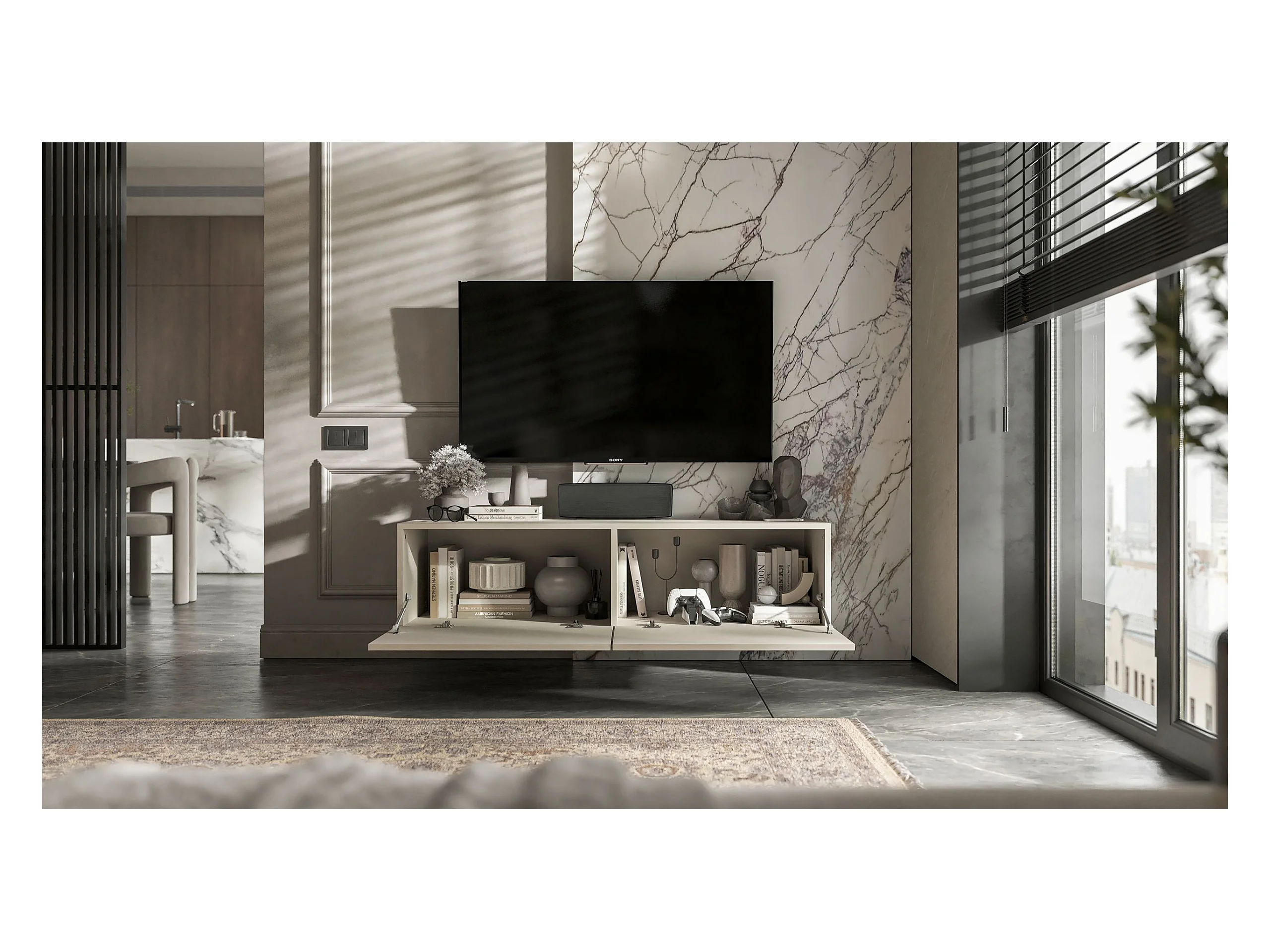 Meuble TV suspendu avec 4 portes - corps Cachemire mat, façades Cachemire mat - 240 cm