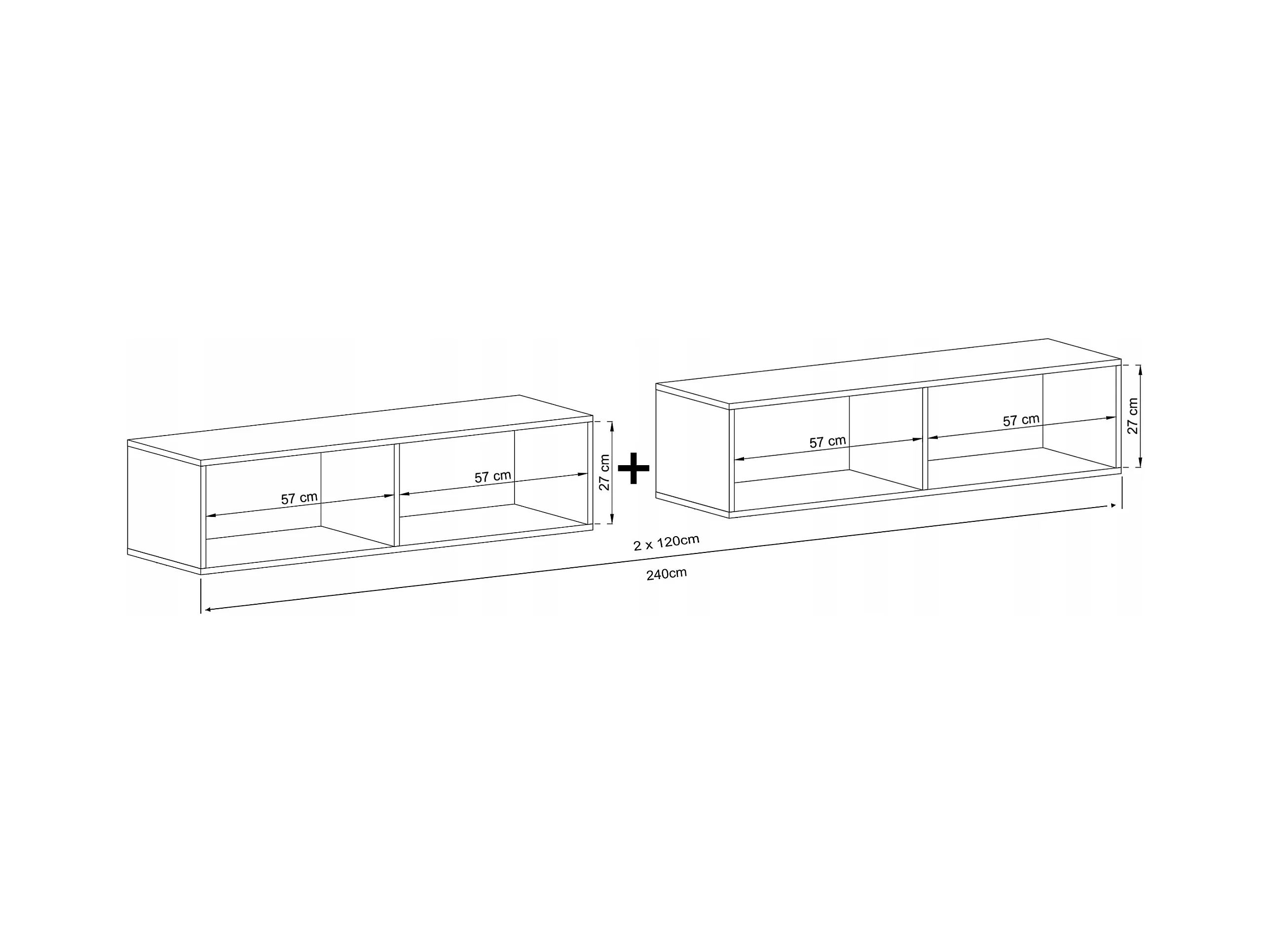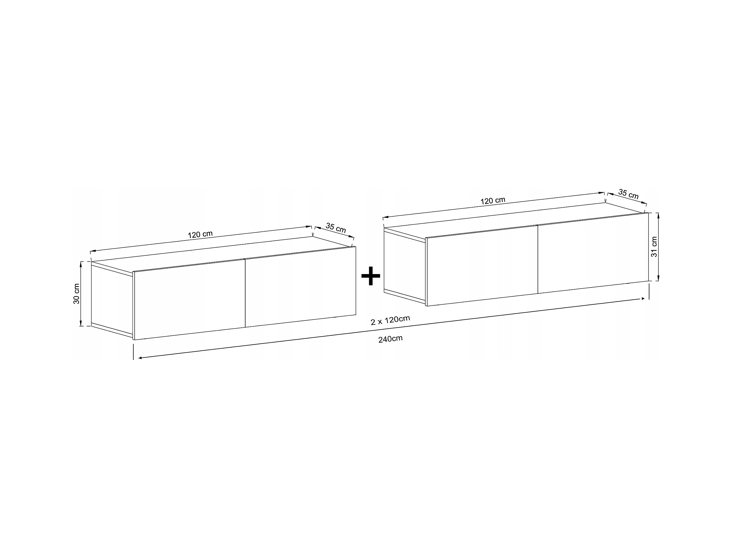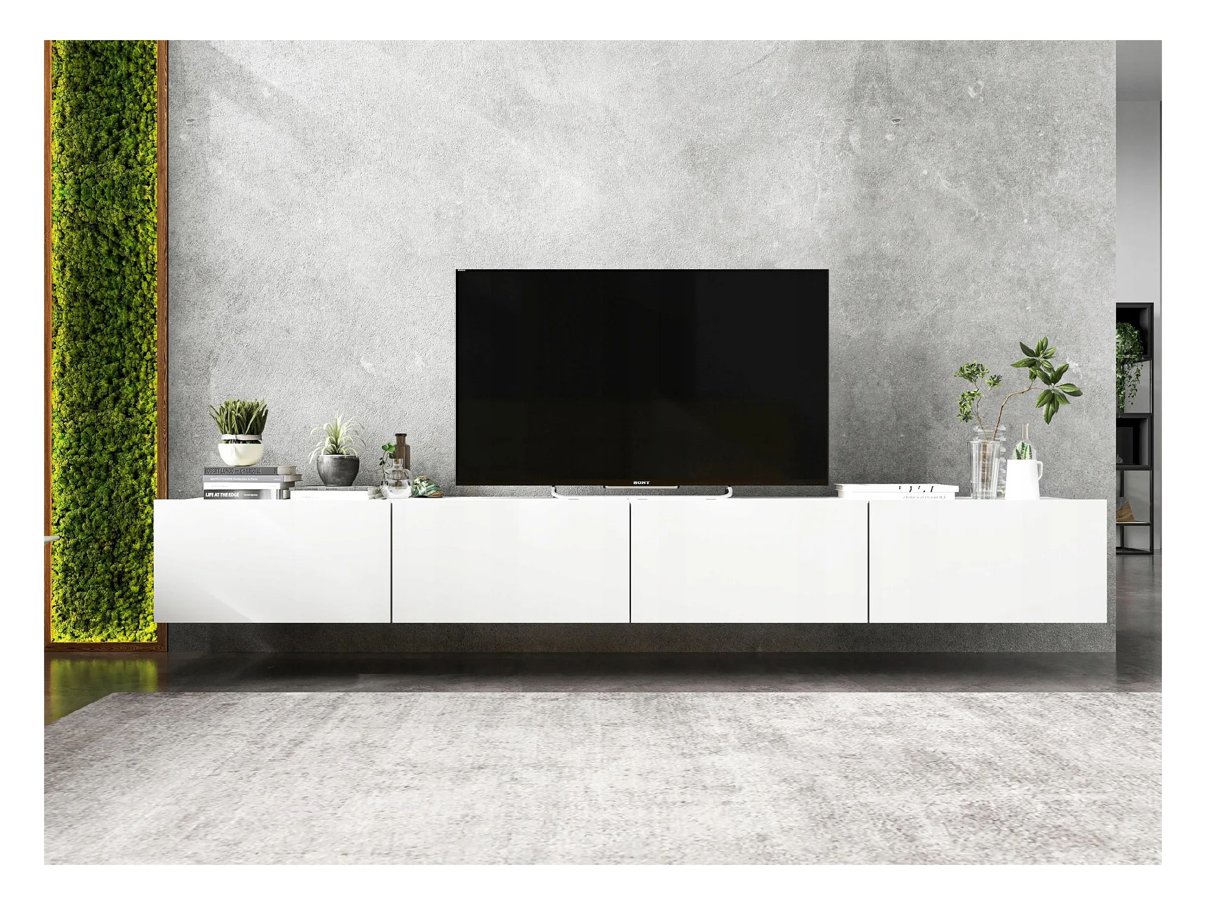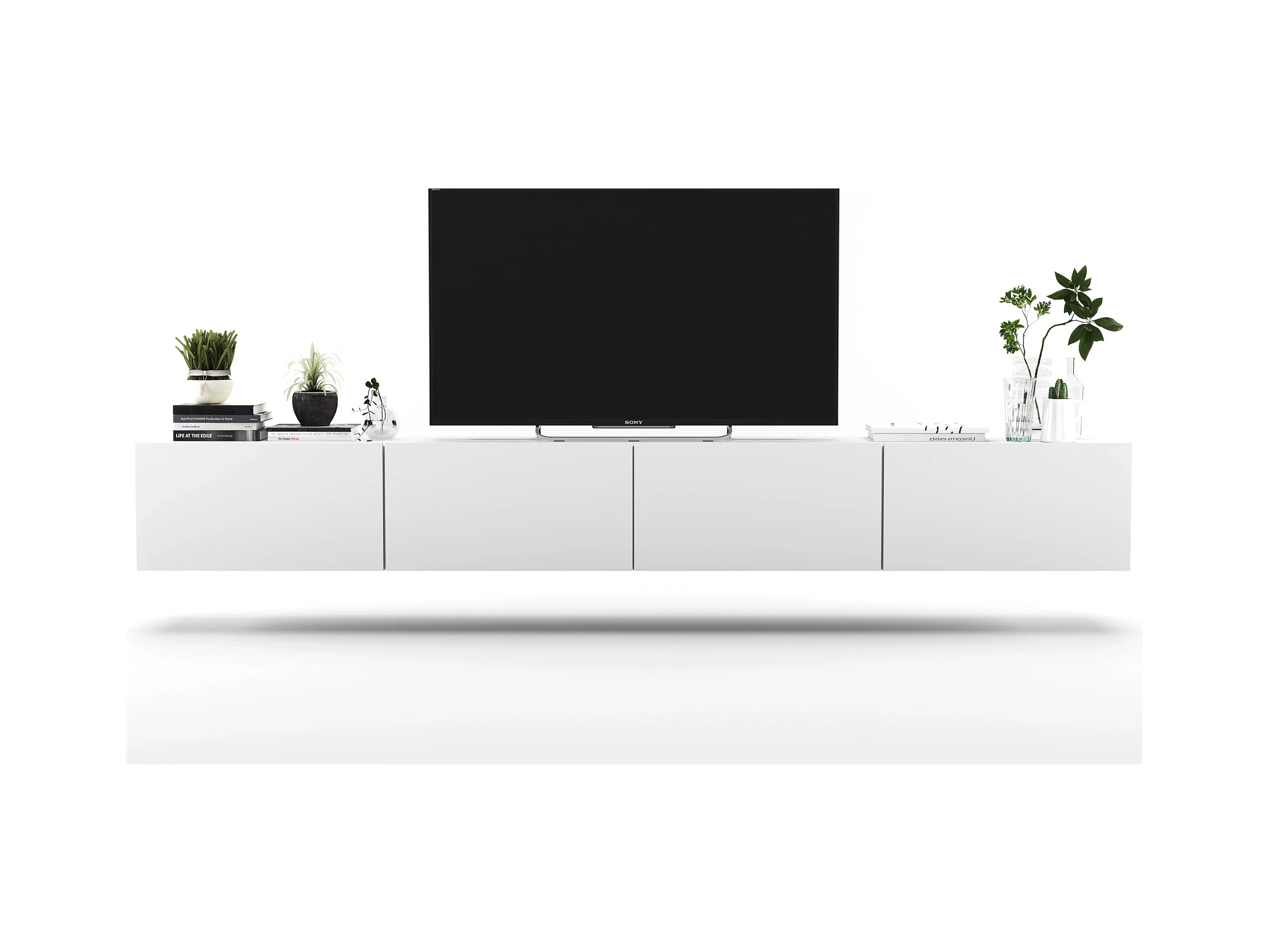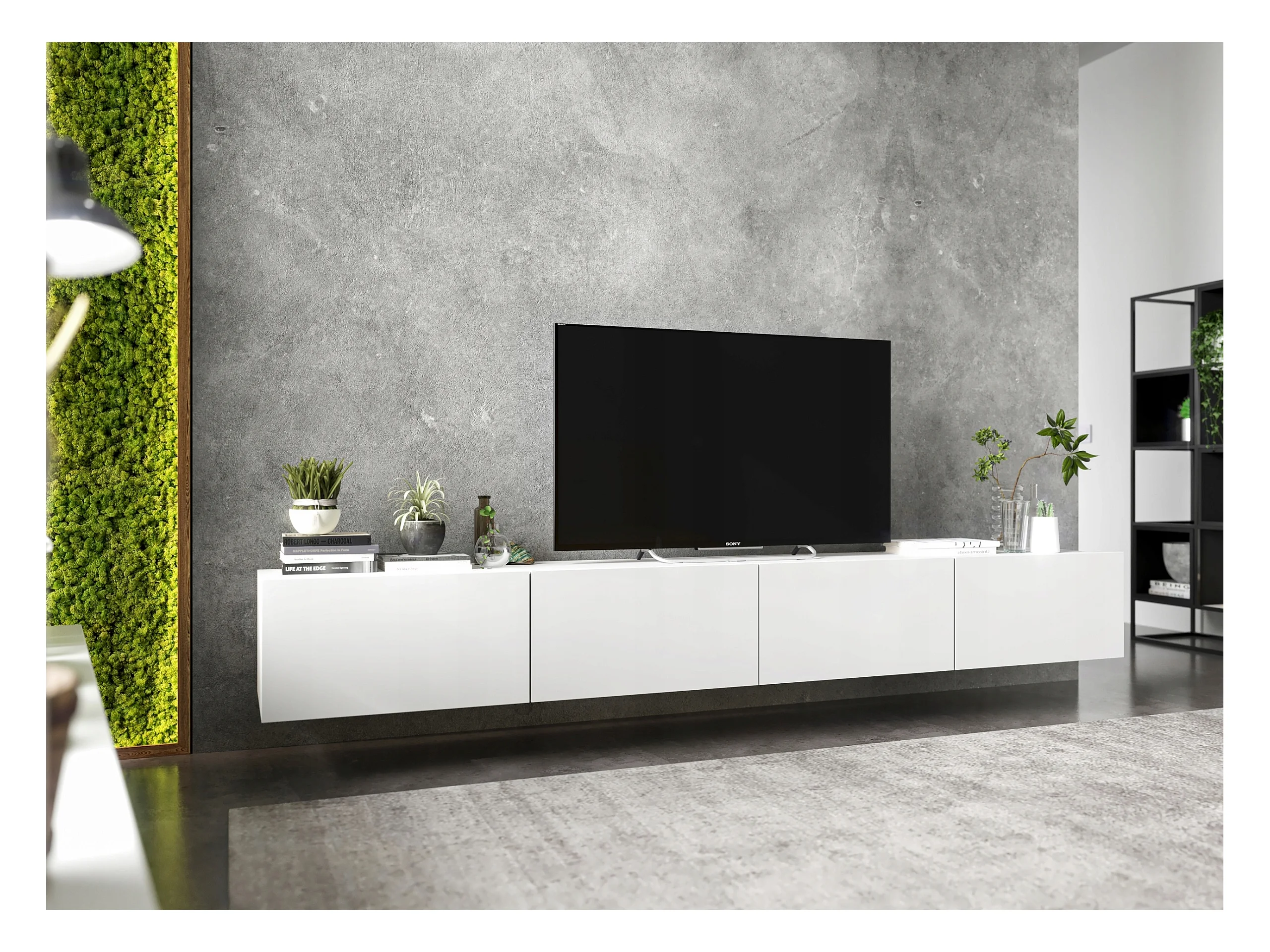 Meuble TV suspendu avec 4 portes - corps Blanc mat, façades Blanc mat - 240 cm