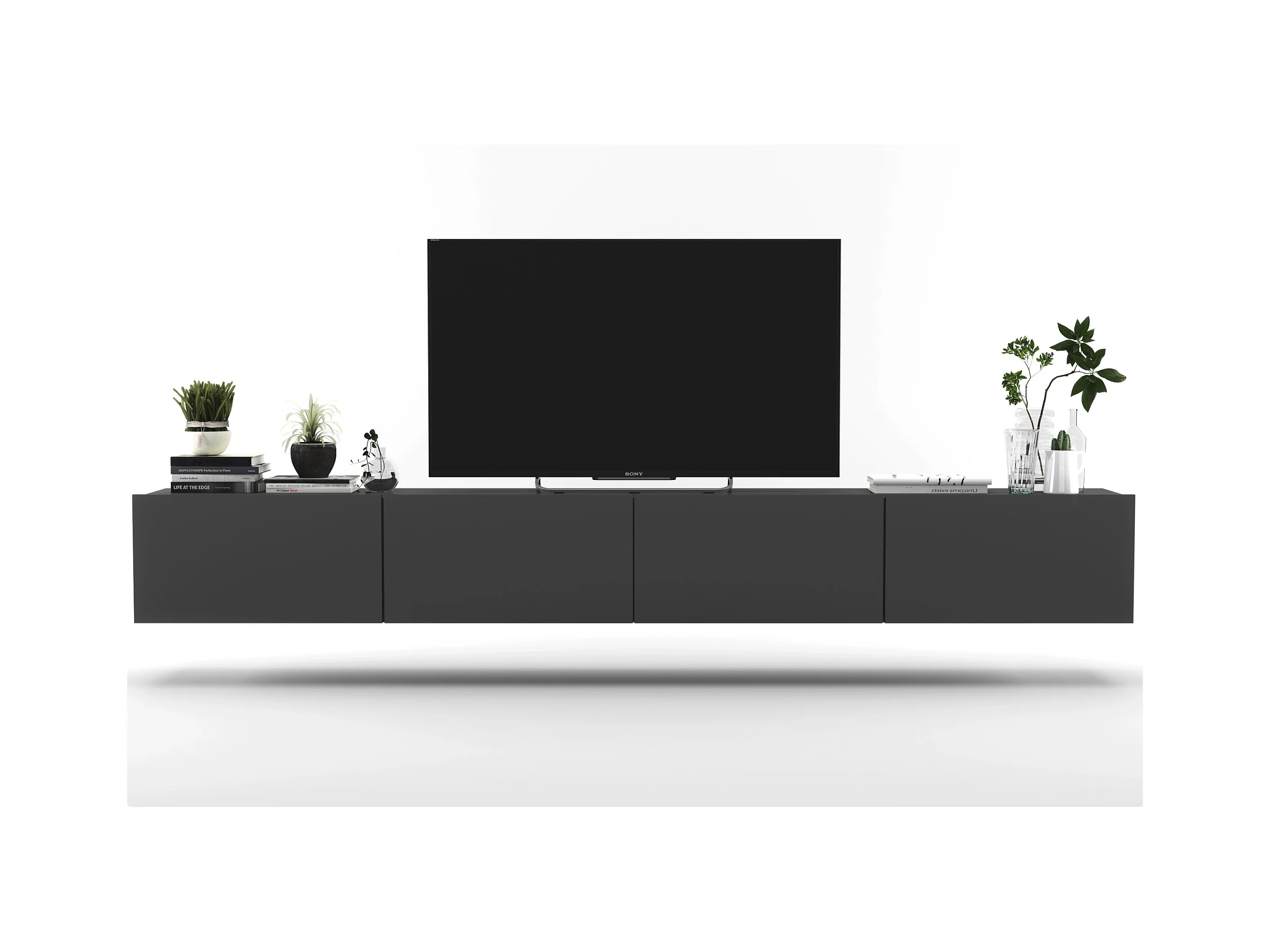 Meuble TV suspendu avec 4 portes - corps Graphite mat, façades Graphite mat - 240 cm