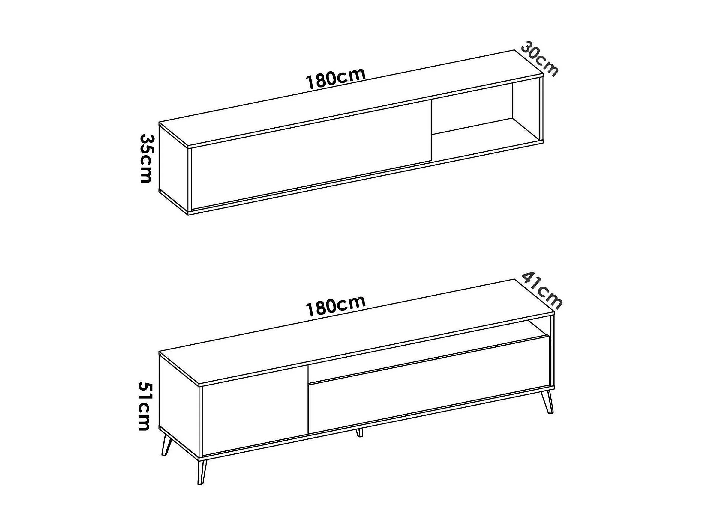 Meuble TV Tambo, Meuble TV pour salon, Meuble de salon polyvalent, 180x41h180 cm, Anthracite et Chêne Knot