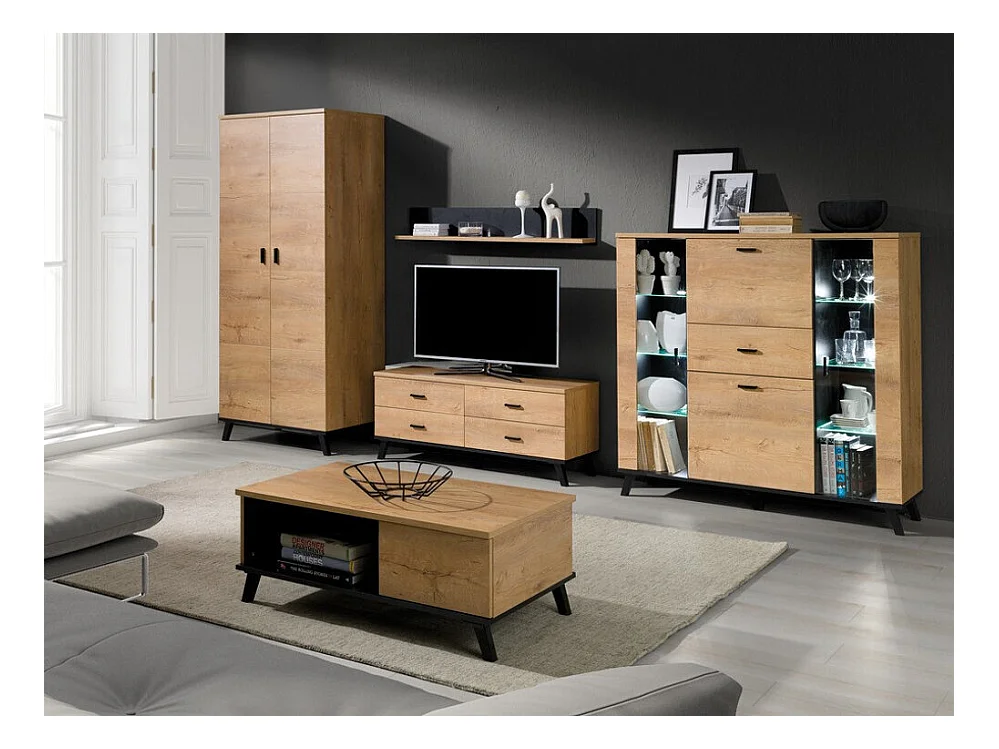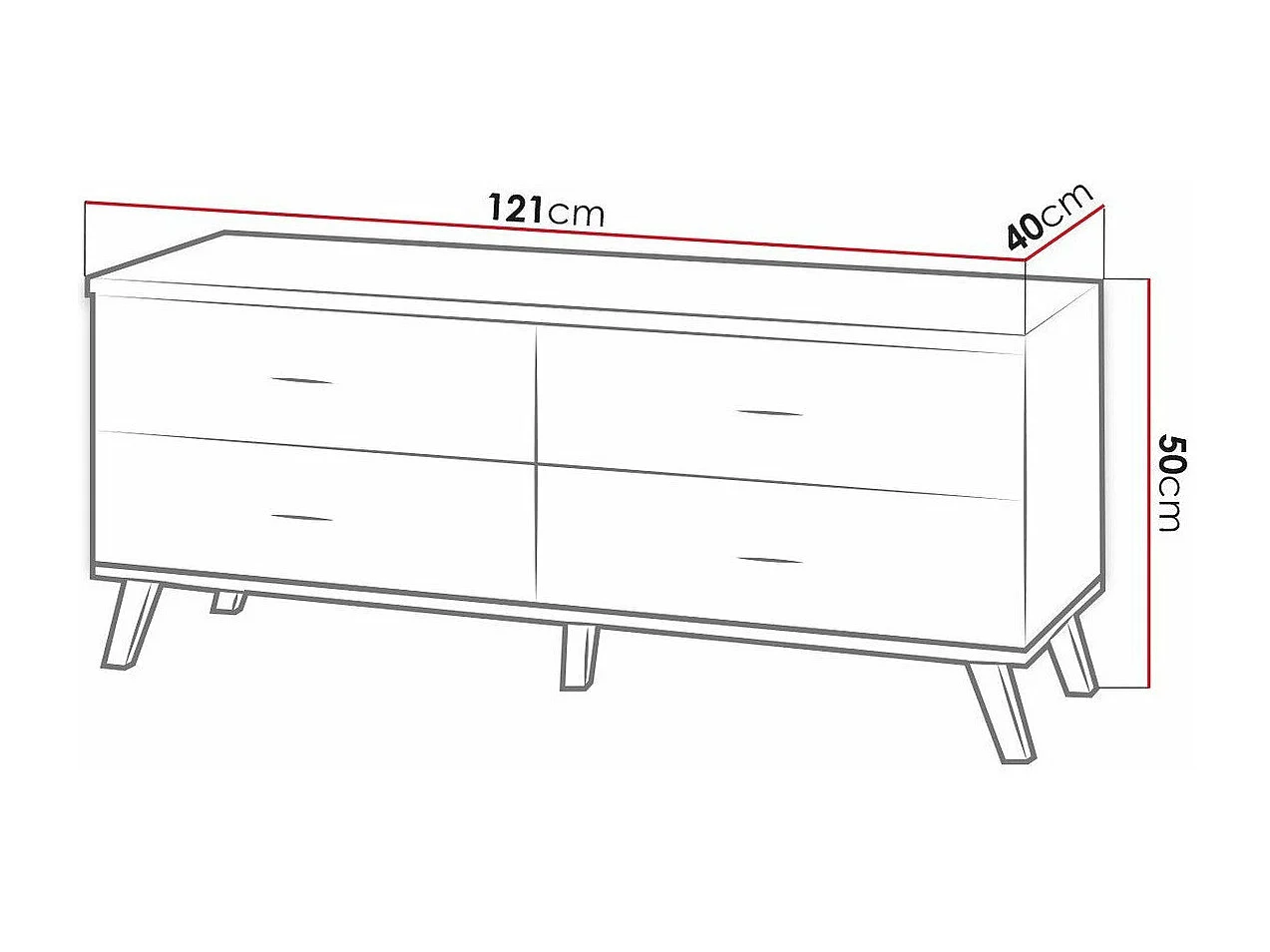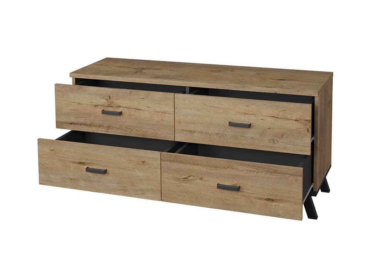 Meuble TV Talsere 106, Chêne de Lefkas|Noir, Nombre de tiroirs: 4, 121x50x40cm