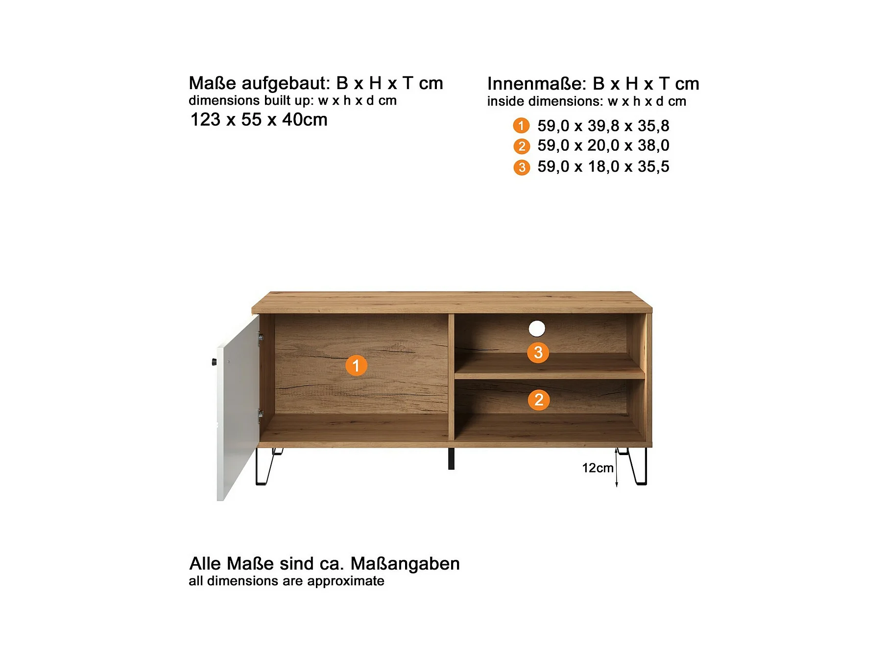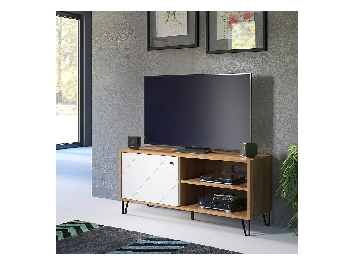Meuble TV Touch, Blanc, 123x56x40 cm, Seven Design