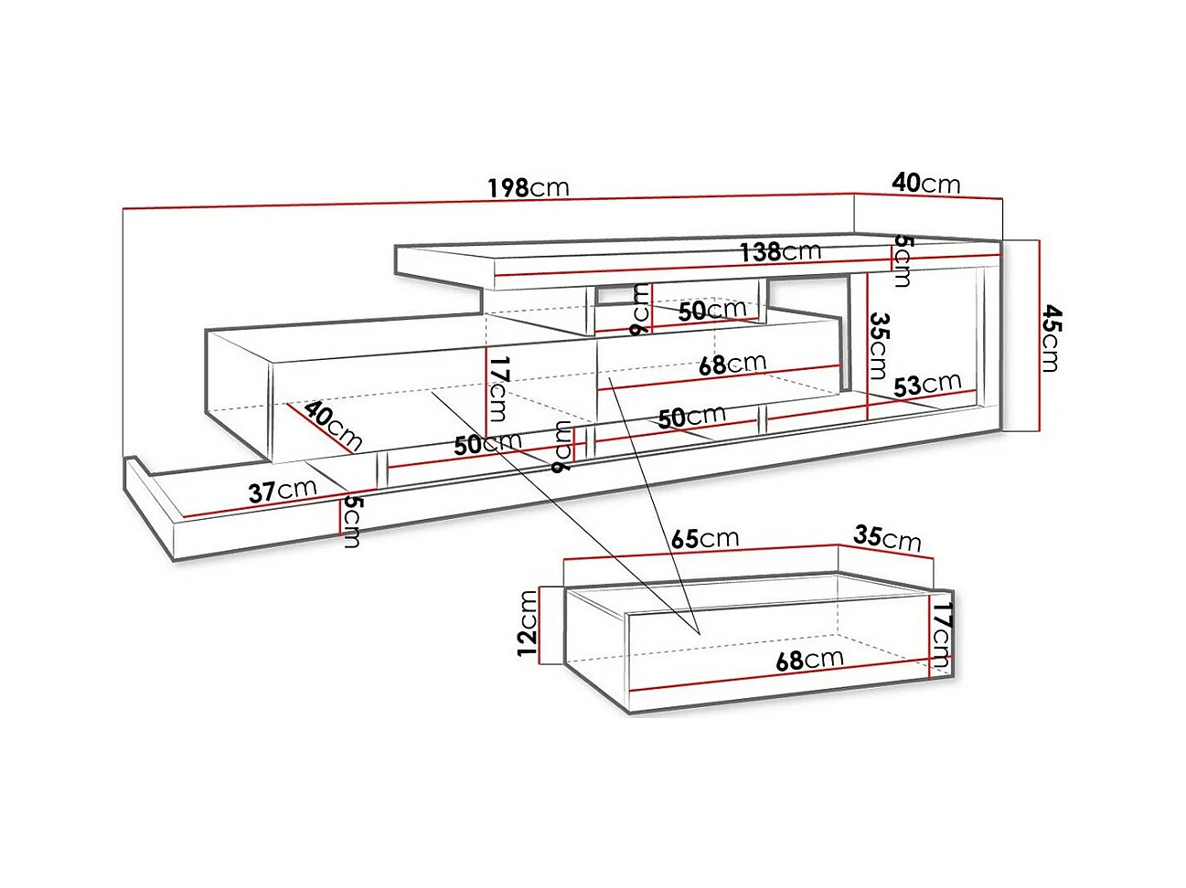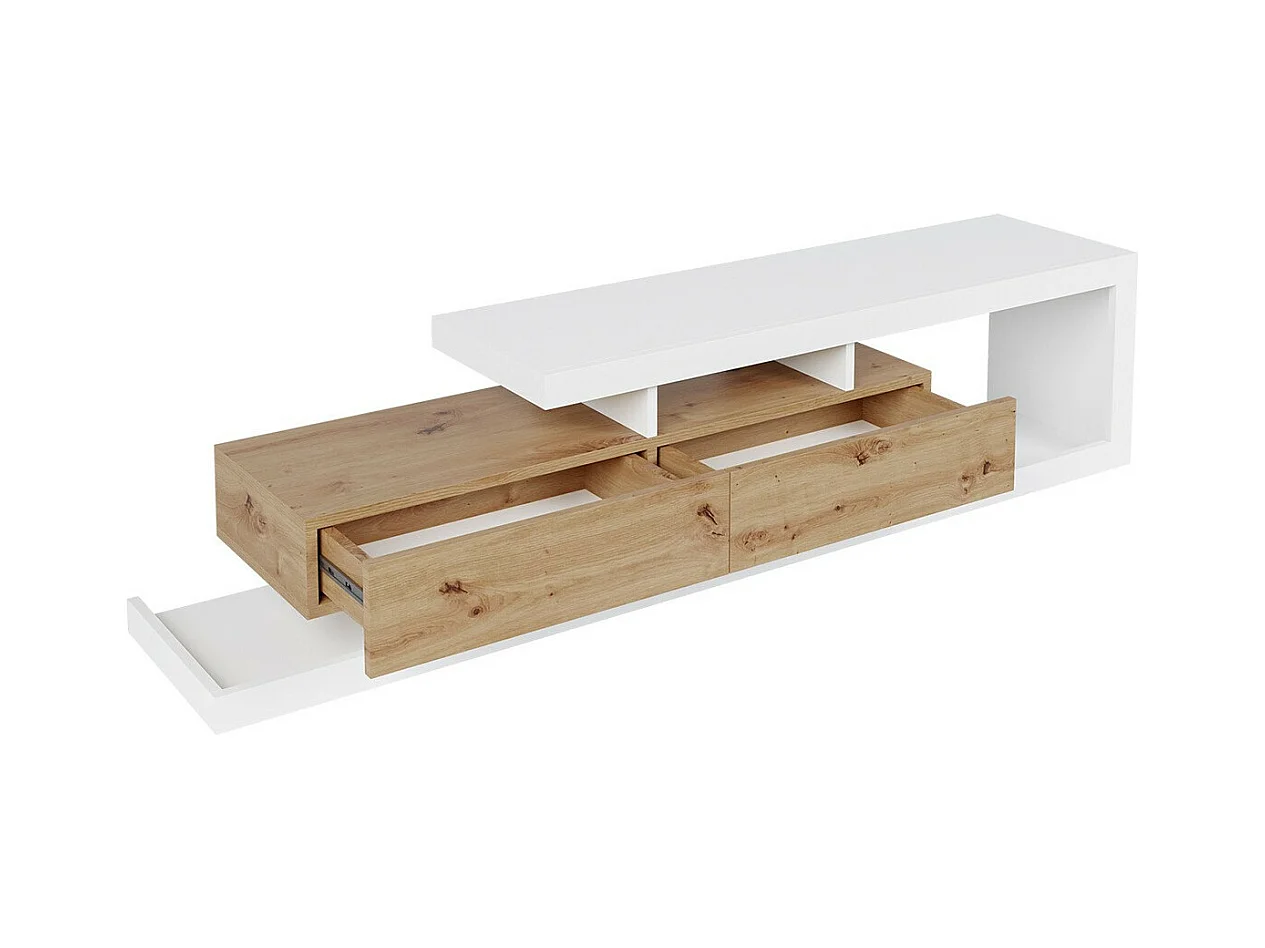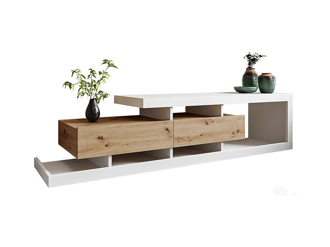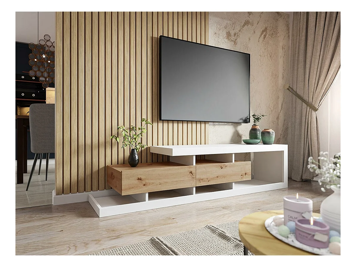 Meuble TV Utica 103, Chêne wotan|Blanc, Nombre de tiroirs: 2, 198x45x40cm