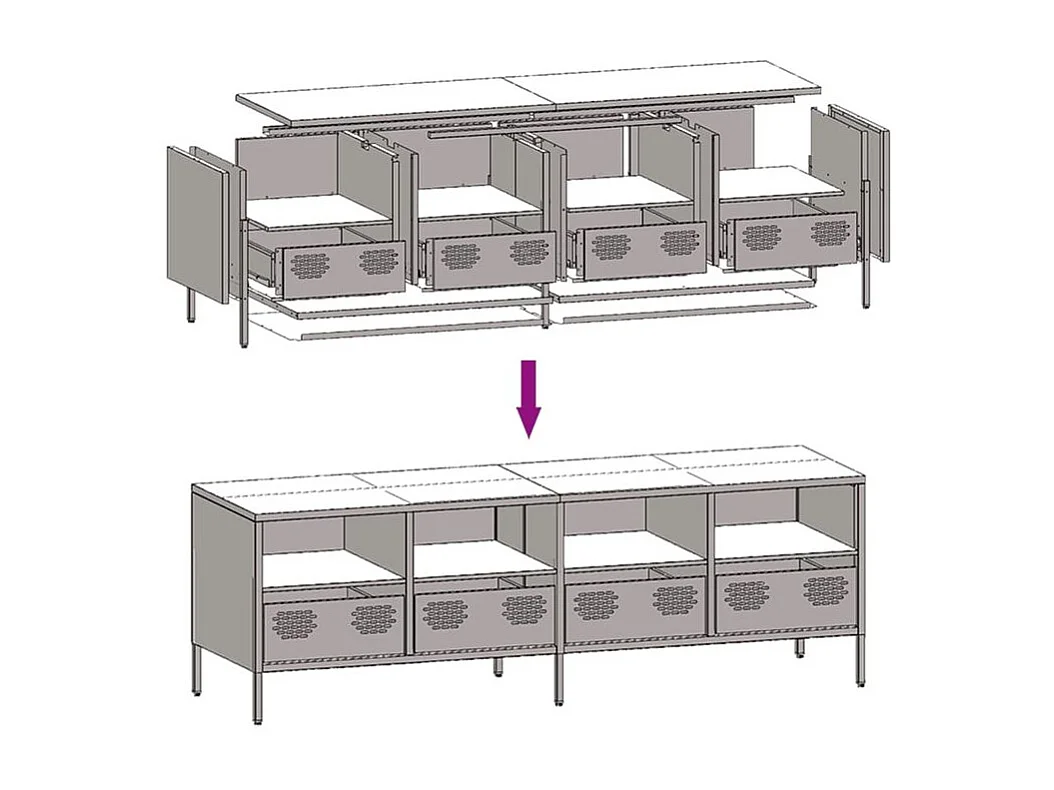 Meuble TV vert olive 135x39x43,5 acier laminé à froid