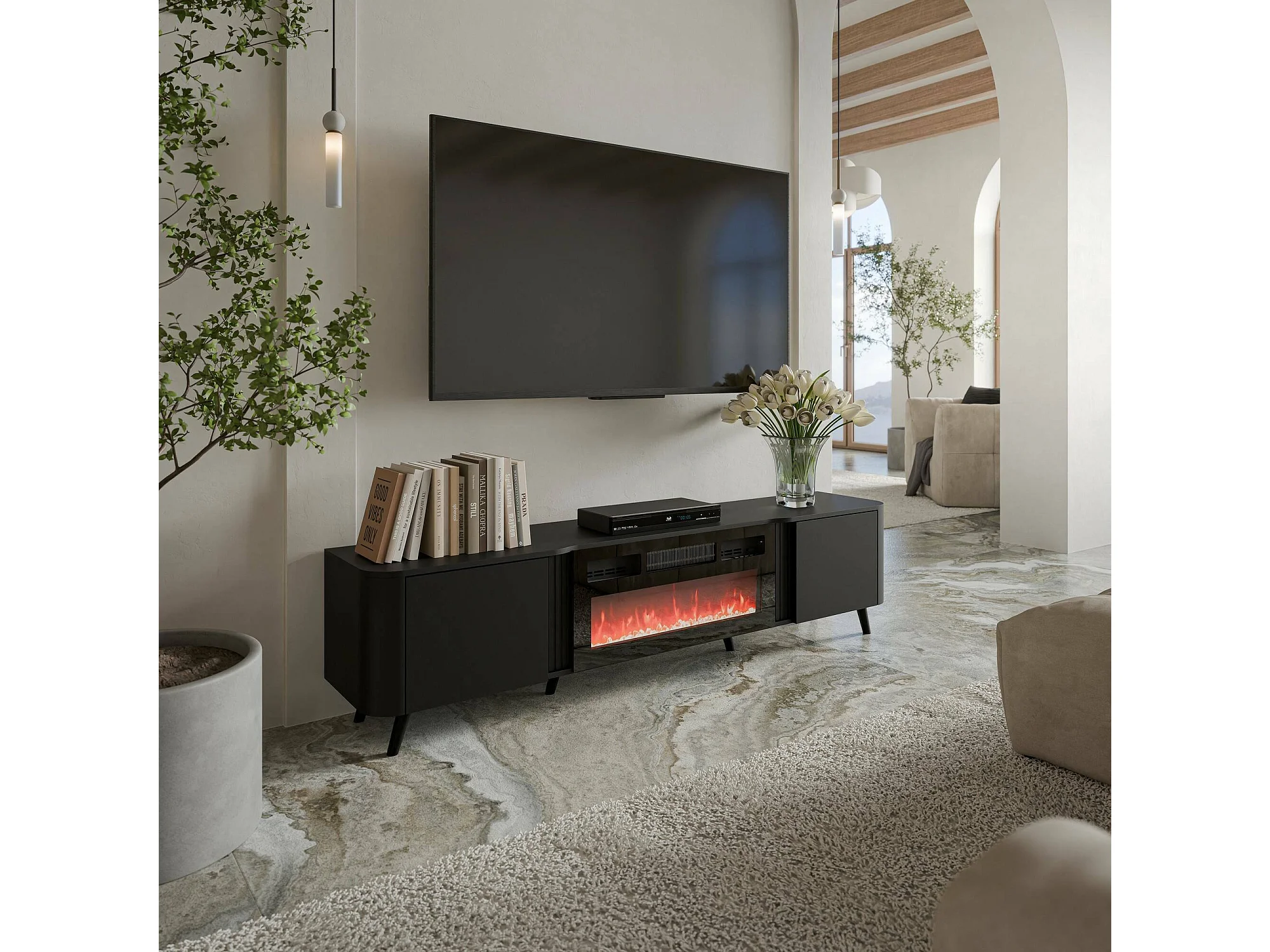 Meuble TV Tomar, 2 Étagères, 40x190,5x58h cm Noir