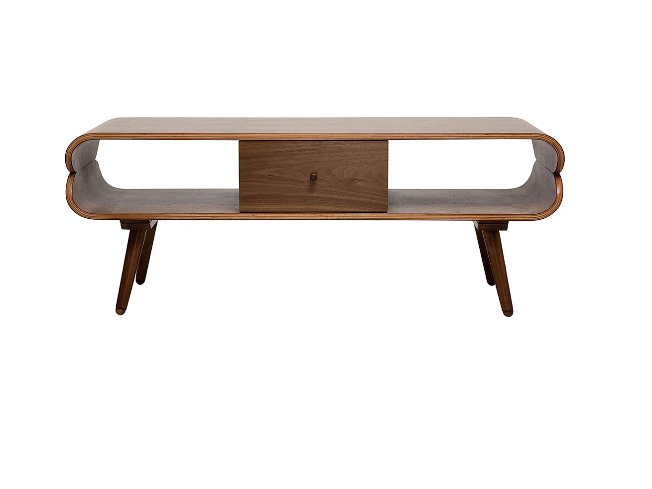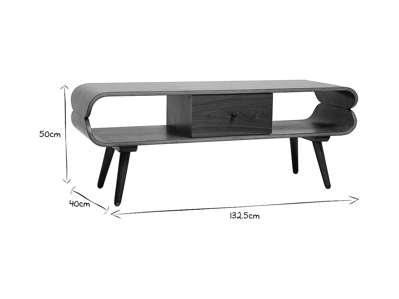 Meuble TV vintage en bois foncé avec rangements L132 cm TAKLA