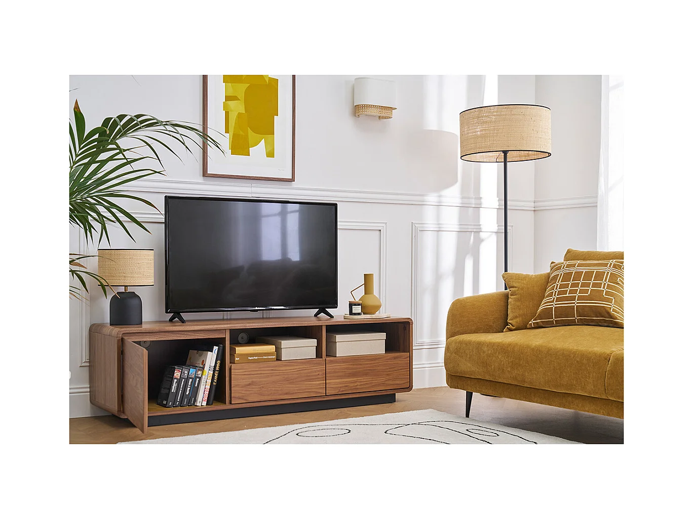 Meuble TV vintage en bois foncé noyer et métal noir L160 cm JAKO