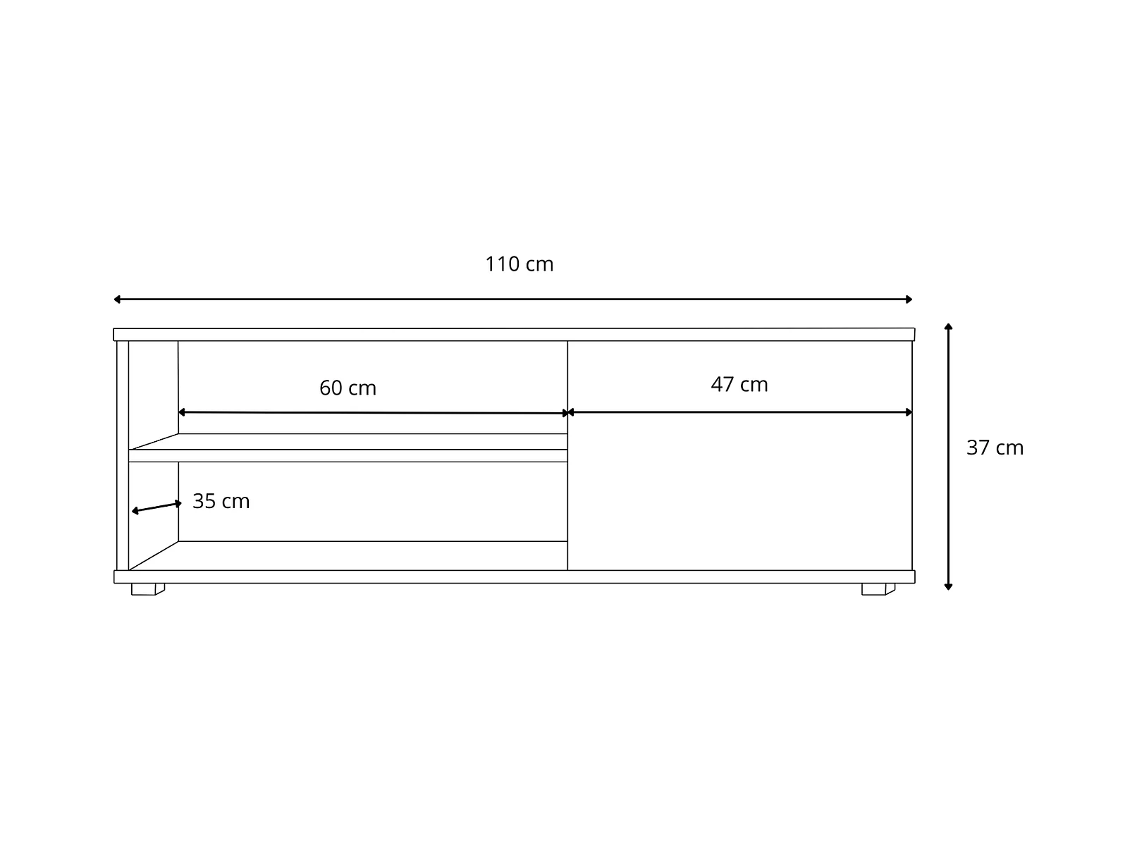 Meuble tv - viva - blanc - jambes en plastique - style scandinave - l 110 cm x p 35 cm x h 37 cm – chêne artisan